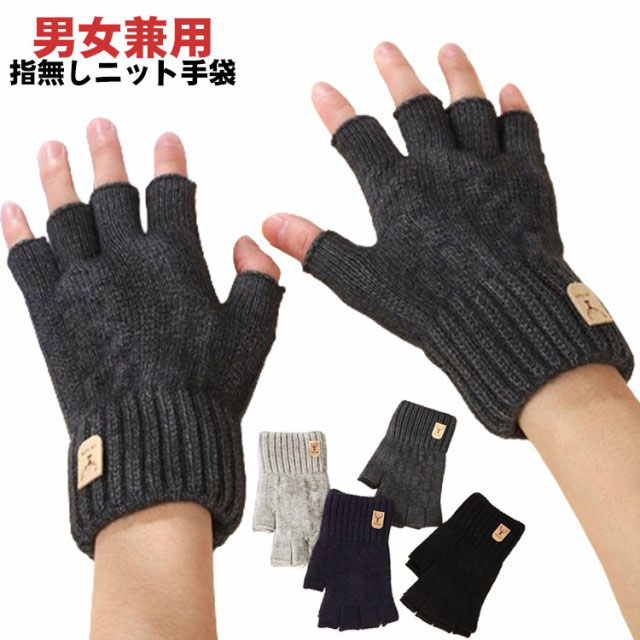 【送料無料】手袋 スマホ手袋 指なし レディース メンズ 作業 作業用 スマホ対応 アウトドア スポーツ 自転車 通勤 ニット グローブ 防寒 保湿 暖かい 冬 黒 グレー ネイビー