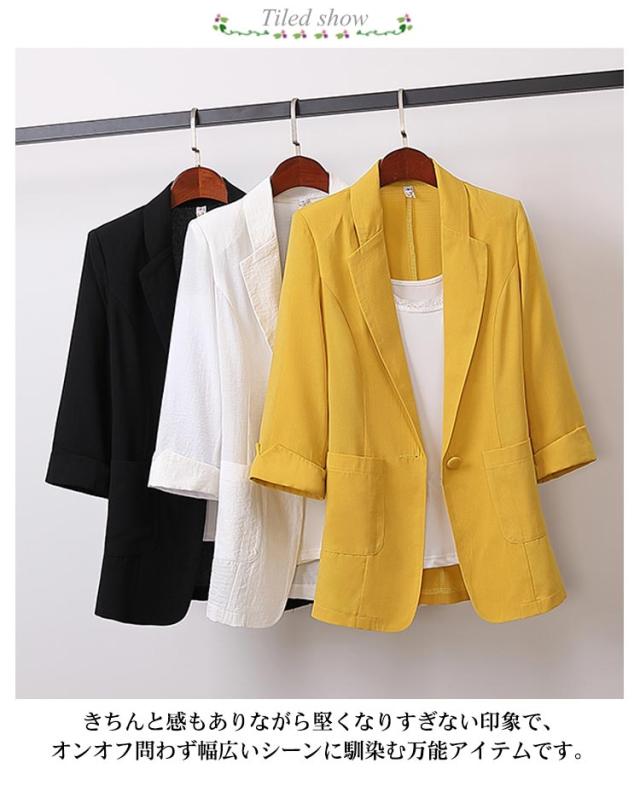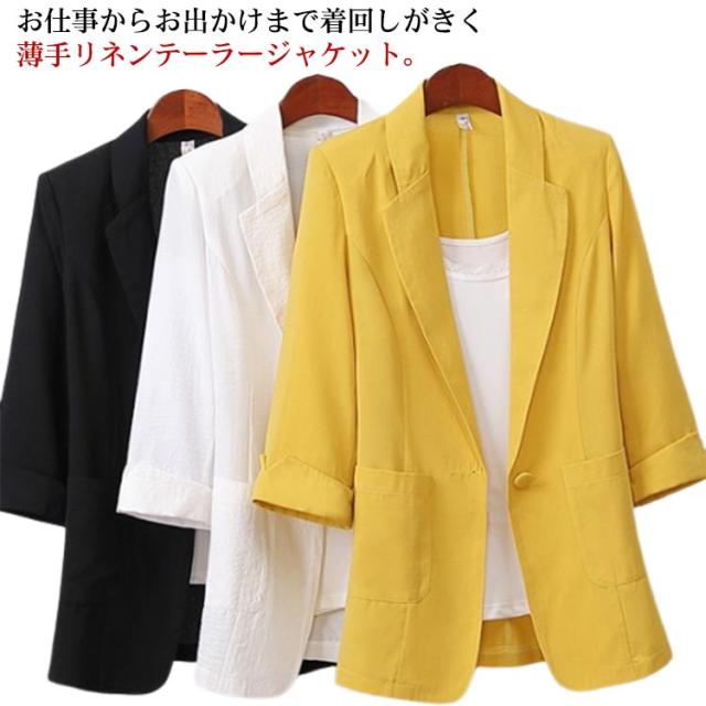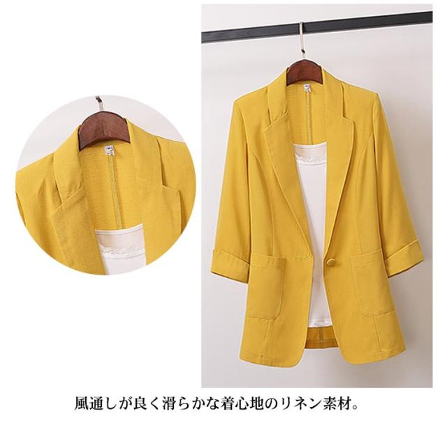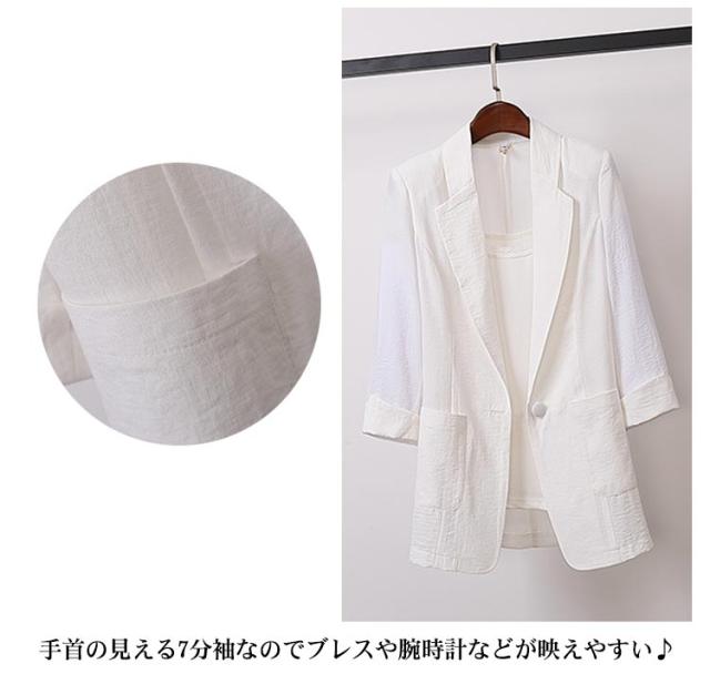 送料無料 リネン テーラードジャケット レディース 七分袖 サマージャケット リネンジャケット 薄手 7分袖 春 夏 秋 ライトアウター 通勤 ママスーツ カジュアル シンプル OL オフィス 上品 ゆったり キレイめ オシャレ
