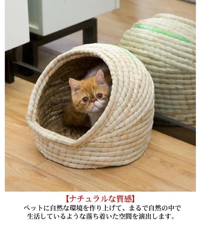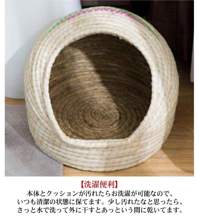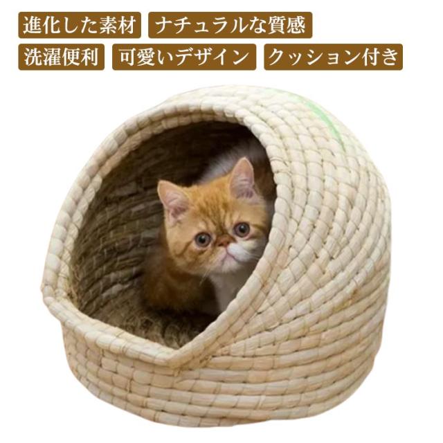 ペットベッド 猫 ベッド ドーム型 おしゃれ 天然素材 猫 ちぐら風 ネコ ねこ 犬 小型犬 cat ウォーターヒヤシンス ナチュラル つぐら風 ペットハウス グレー 涼しい 夏用 暖かい 快適 置き型 洗える