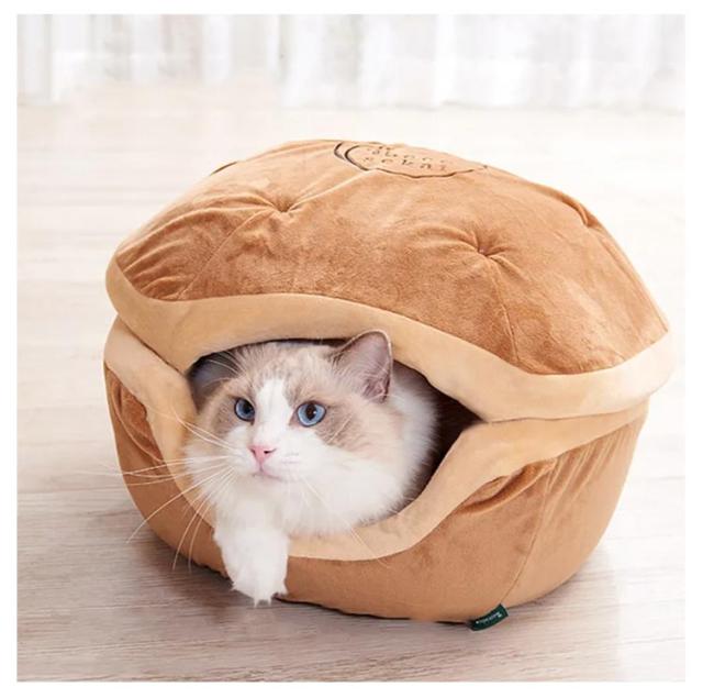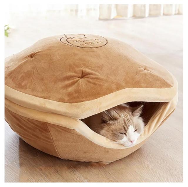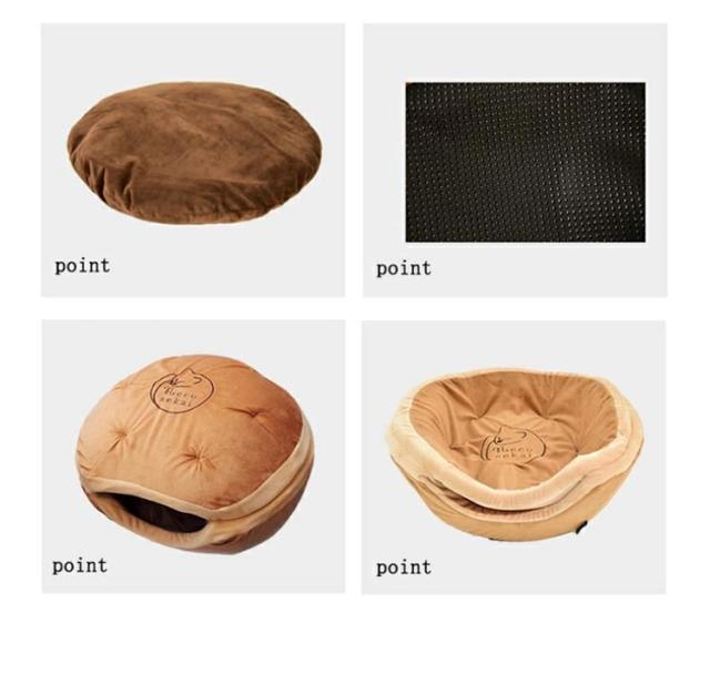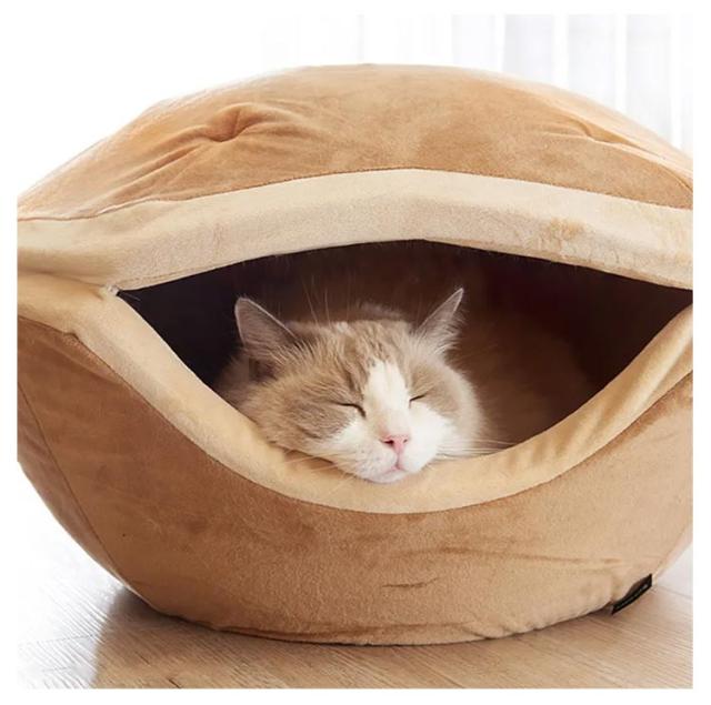| 寒い時はドーム型の中で暖かく春や秋には屋根をつぶしてラウンド型にしてオールシーズンで使用できる2WAYペットベッドで快適 ありそうでなかった3サイズで個体にあわせてご使用できます。 | |