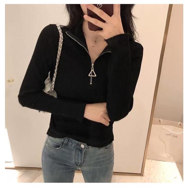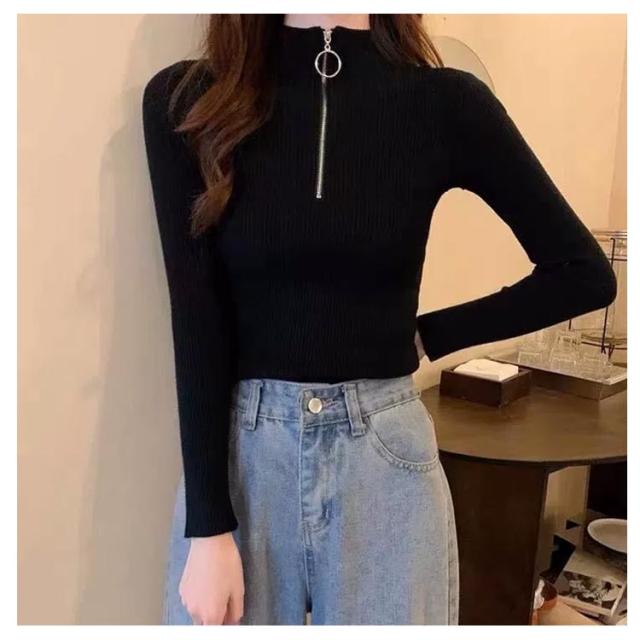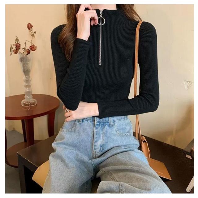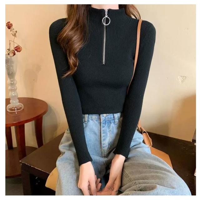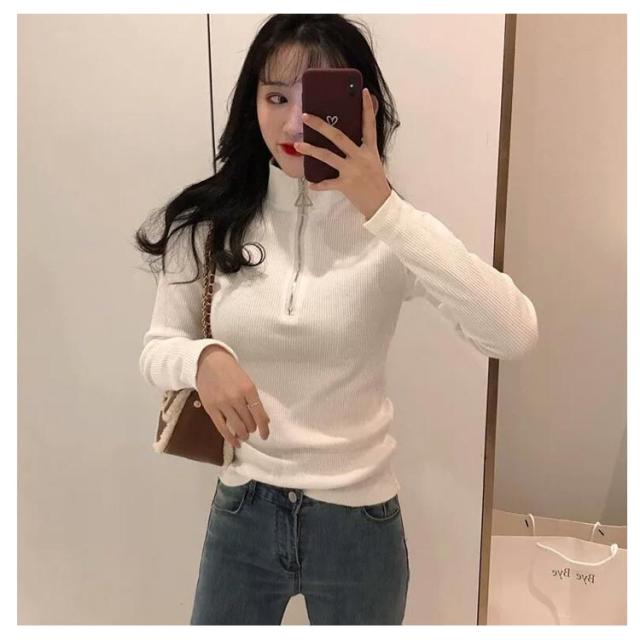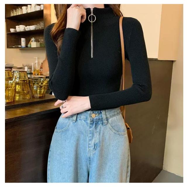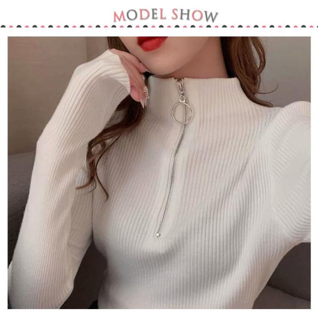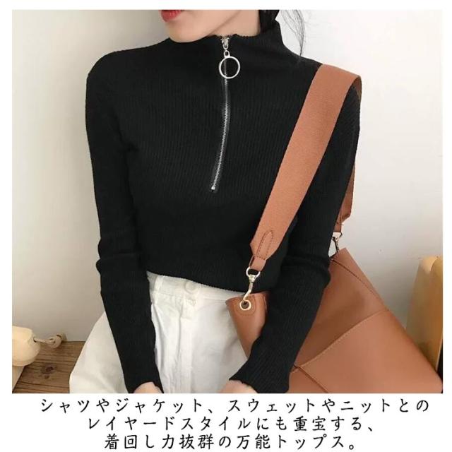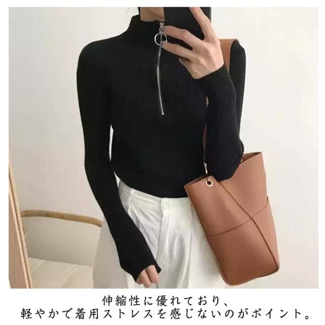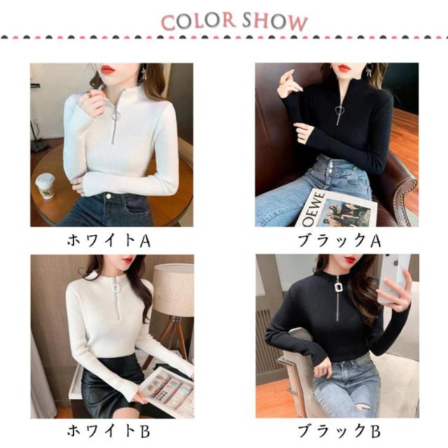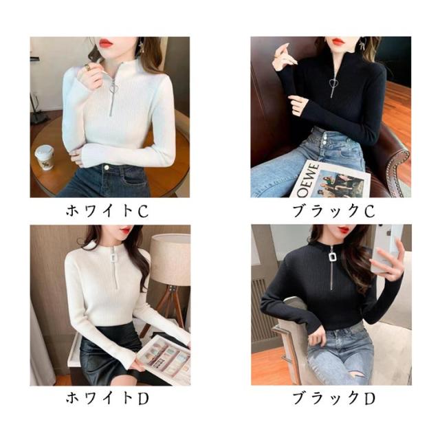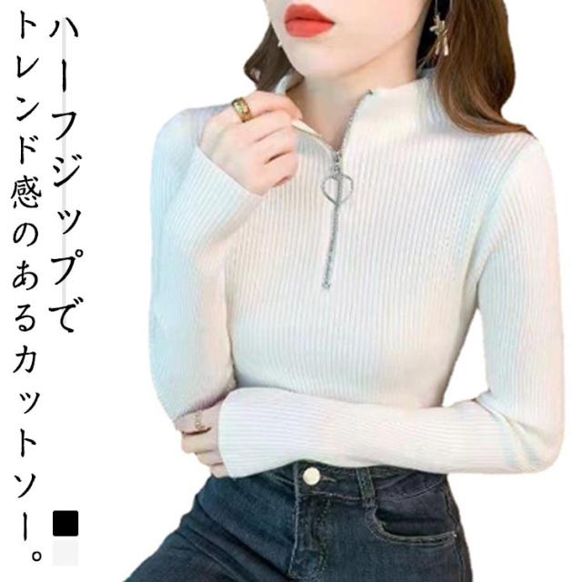 カットソー レディース リブニット カットソー 長袖 Tシャツ ニットトップス ハーフジップ ハイネック ニット セーター インナー シンプル スリム フィット 無地 ストレッチ カジュアル 韓国 春秋冬 送料無料