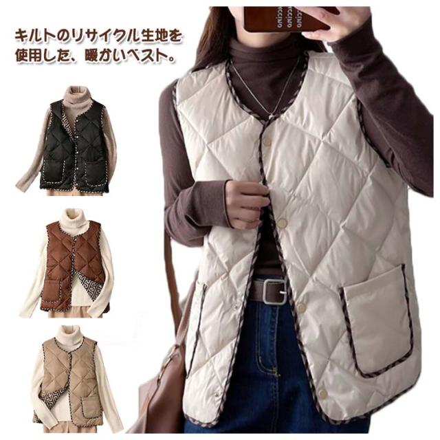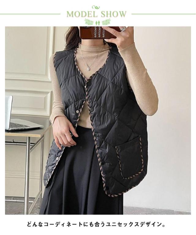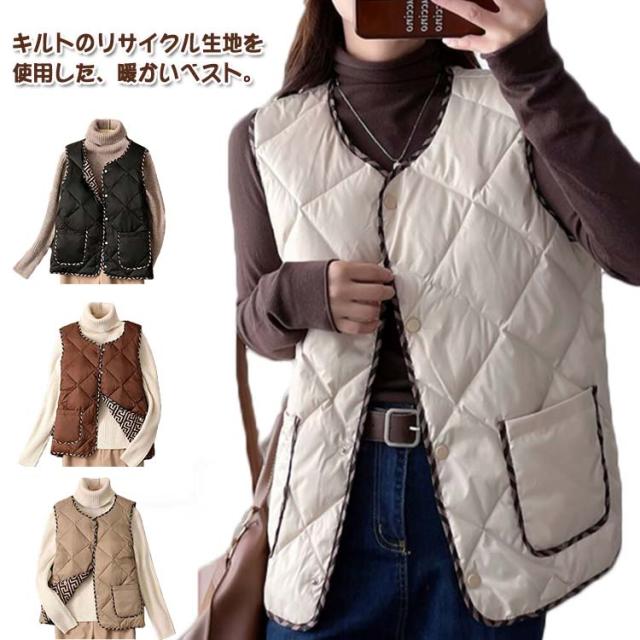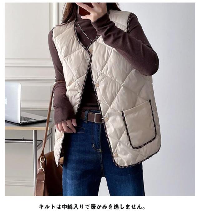 中綿キルトベスト 4色 洗える レディースファッション アウター ベスト 中わた 中綿 レディース ロング カジュアル リラックス 防寒 羽織り インナーベスト 暖かい 秋冬