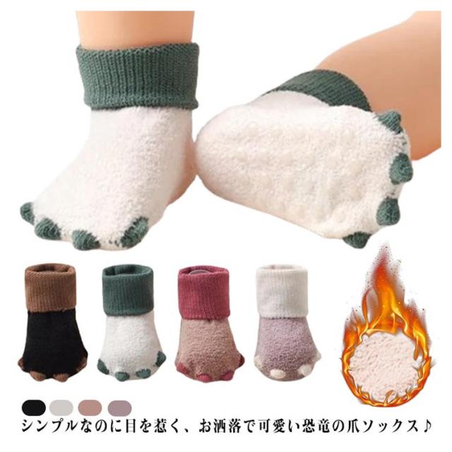 靴下 ベビー 恐竜の爪 動物 アニマル ソックス 滑り止め付き フリース あったか くつ下 キッズ 子供用靴下 赤ちゃん あかちゃん 新生児 靴下 ベビーソックス 足冷え対策 ケガ防止 柔らかい 滑りにくい 柔らかい 男の子 女の子 ベビー用品