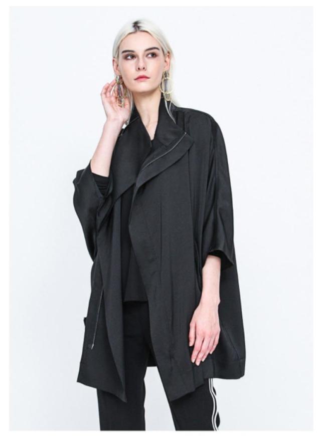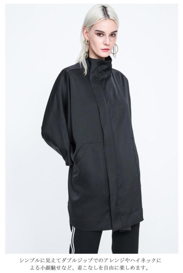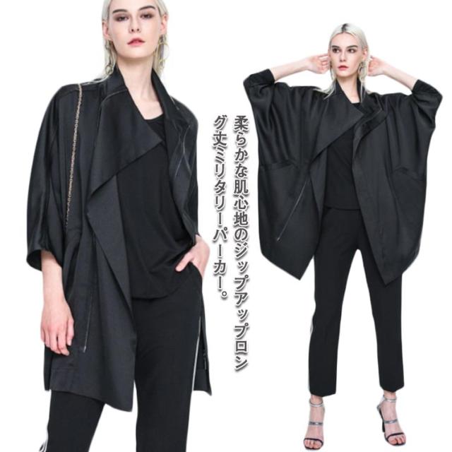 パーカー レディース ジップアップ マウンテンパーカー 七分袖 ハイネック 羽織 ジャケット アウター 無地 ミリタリージャケット ジャンパー ブルゾン ポンチョコート ドルマン ドロップショルダー 小顔 ストレッチ 防風 無地