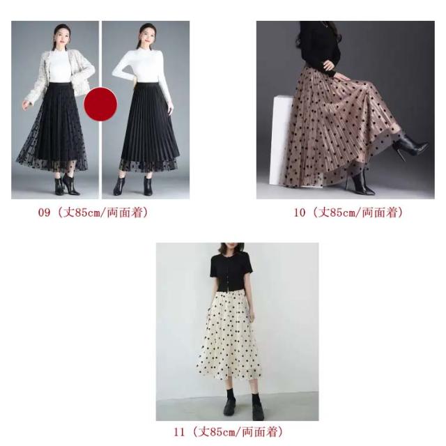 | 色 | 01(丈75cm) 02(丈75cm) 03(丈75cm) 04(丈75cm) 05(丈85cm) 06(丈85cm) 07(丈85cm) 08(丈85cm) 09(丈85cm/両面着) 10(丈85cm/両面着) 11(丈85cm/両面着) |