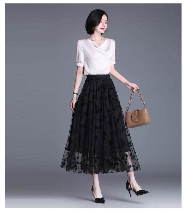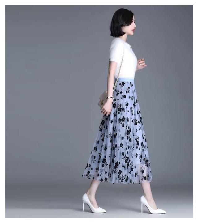 チュールスカート 花柄 レディース スカート ロング丈 ミモレ丈 フレアスカート 春 夏 裏地付き Aライン ハイウエスト ロングスカート チュールスカート ウエストゴム 体型カバー きれいめ 通勤 通学 可愛い 秋冬 送料無料 M-2XL