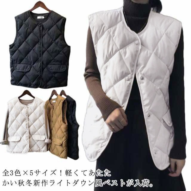 インナー ダウンベスト レディース 中綿ベスト キルティングベスト 軽量 ベスト ダウン綿 秋 冬 春 インナーダウン ライトダウン ベスト ノーカラー 中綿ジャケット 袖なし スリム あたたかい 防寒 ショート丈 薄手 防寒着 ルームウェア 暖かい 春 秋 冬 送料無料