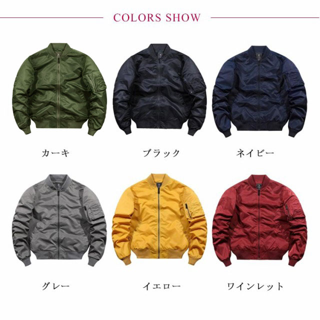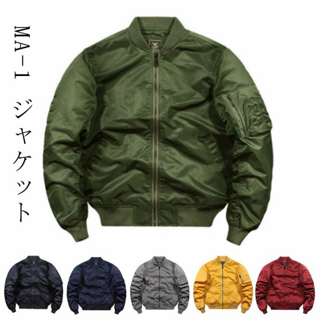 MA-1 メンズ レディース ma-1 メンズ ブルゾン ミリタリー ジャケット 秋 春 防風 ジッパー フライトジャケット ミリタリージャケット ブルゾン アウター メンズファッション ショット丈 カジュアル 大きいサイズ