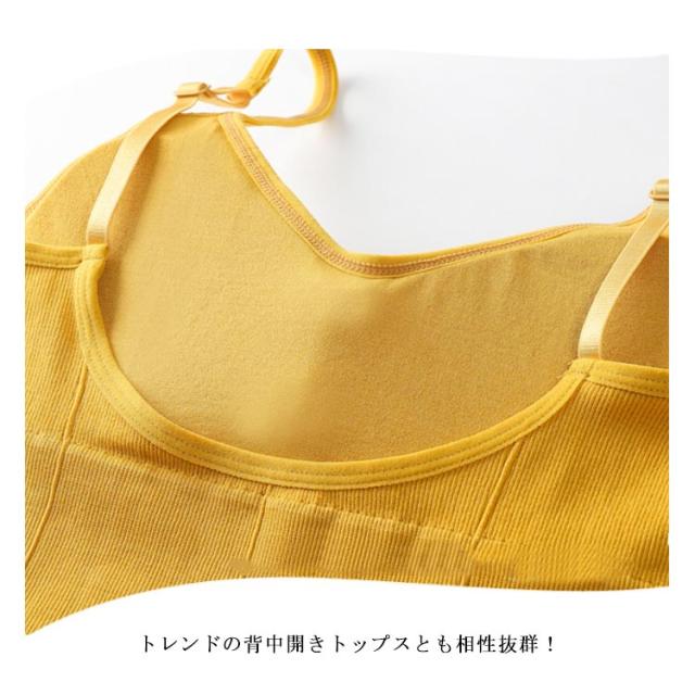 | Uバックオープンブラキャミ単品!! 伸縮性に優れた薄手の生地を採用している トレンドの背中開きトップスとも相性抜群! デイリーはもちろん、おうちでのリラックスタイムにも便利なインナー。 バッドは取り外し可能で、ストレスゼロ♪ 長さ調整可能なストラップと伸縮性が高い生地で アクティブな体の動きにもやさしくフィットします。 | |
