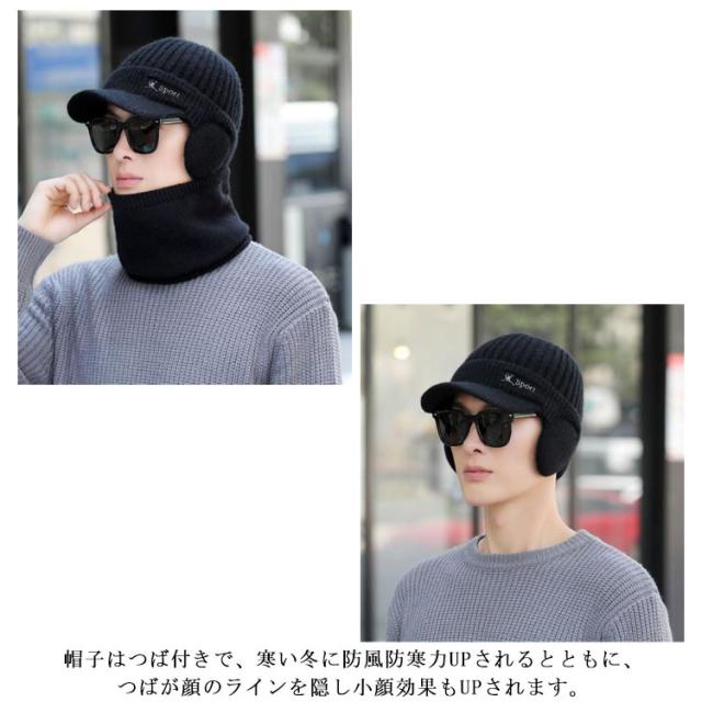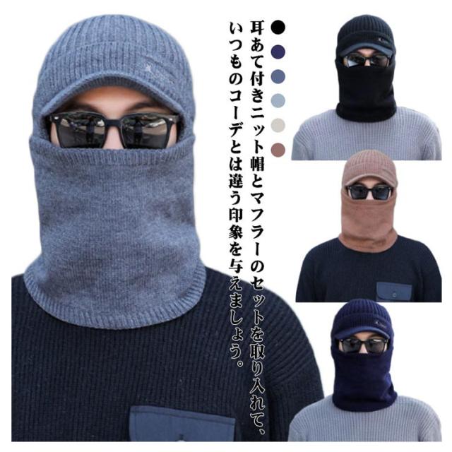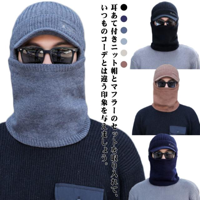 冬 ニット帽 メンズ ニットキャップ 耳あて ネックウォーマー 2点セット 帽子 ぼうし 無地 帽子 つば付き スヌード つば付きニット帽 防寒グッズ おしゃれ 防寒対策 スノーボード スノボ ゴルフ プレゼント ギフト