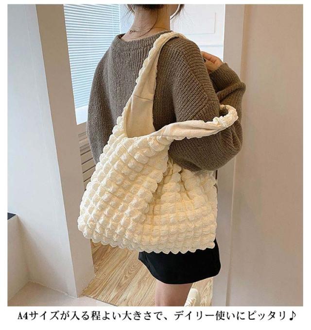 送料無料 ポコポコ トートバッグ レディース 肩掛け ポップコーン エコバッグ サブバッグ ぽこぽこ 大きめ a4 おしゃれ かわいい カジュアル バッグ 凹凸 韓国ファッション ハンドバッグ 軽量 学生 大人 通勤 通学