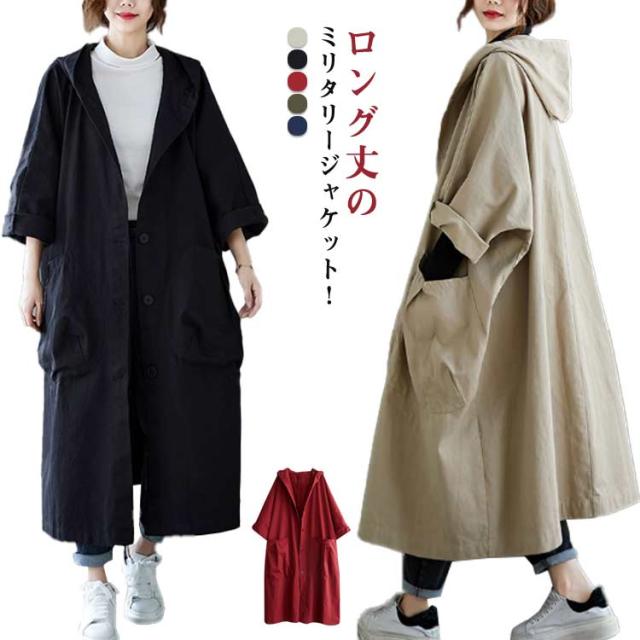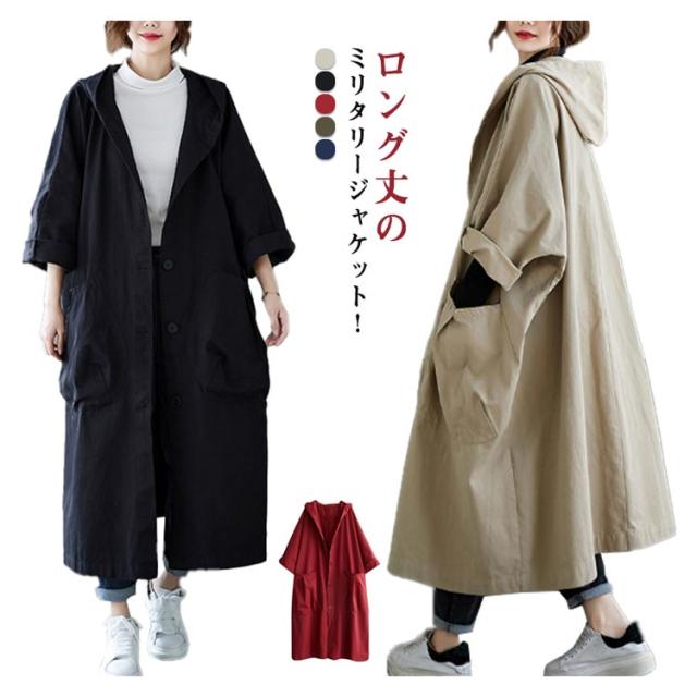 オーバーサイズ ロングコート レディース ロングパーカー 大きいサイズ ロング コート ミリタリーコート マウンテンパーカー アウター ビッグシルエット ゆったり おしゃれ シンプル 体型カバー フード付き 薄手 20代 30代 40代 50代 通勤 春秋冬