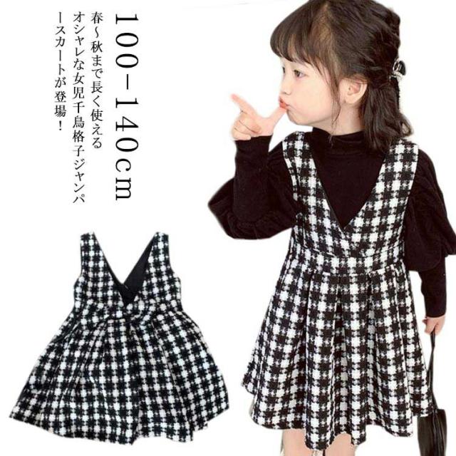 ジャンパースカート フォーマル ワンピース 女の子 キッズ ワンピース ノースリーブ 女の子 入学式 卒園式 フォーマル 子供服 こども服 子ども服 フ千鳥格子 プチプラ 秋 冬 春 90cm 女の子 フォーマル 100cm 110cm 120cm 130cm 140cm 通園 通学 プレゼント ブラック