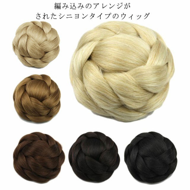 | 編み込みのアレンジがされたシニヨンタイプのウィッグ 着物、浴衣(ゆかた)、袴(はかま)といった和装にも似合います。 お出かけからフォーマルなイベント(結婚式、 披露宴、2次会、お呼ばれ、初詣、成人式、 入学式、入園式、卒業式、卒園式、七五三 など) での髪型・ヘアスタイルを作る際にもどうぞ! | |