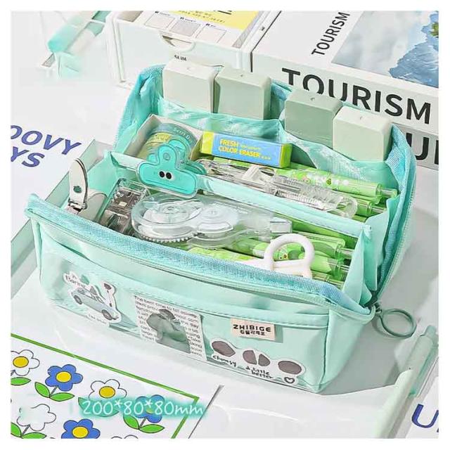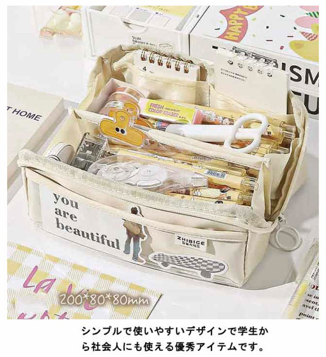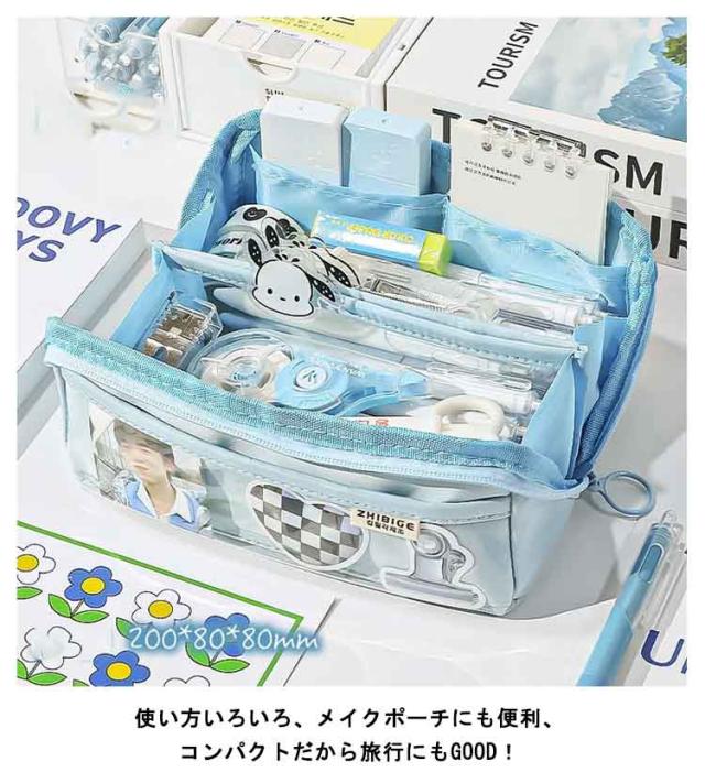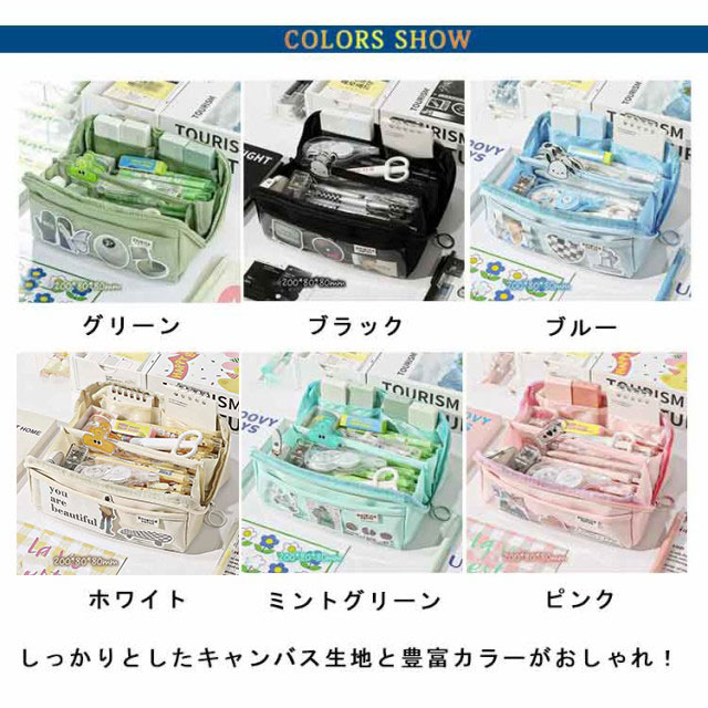 | 仕切り付きでたっぷり収納できる、大容量ペンケース! トレンドの韓国っぽさたっぷりで可愛いペンケース。 しっかりとしたキャンバス生地と豊富カラーがおしゃれ! 収納抜群!小物や文房具など簡単に収納できます。 メインファスナーが大きく開くので、必要なものをスマートに取り出すことができ、ファスナーには引き手がついているので開閉しやすくなっています。 使い方いろいろ、メイクポーチにも便利、コンパクトだから旅行にもgood! シンプルで使いやすいデザインで学生から社会人にも使える優秀アイテムです。 | |