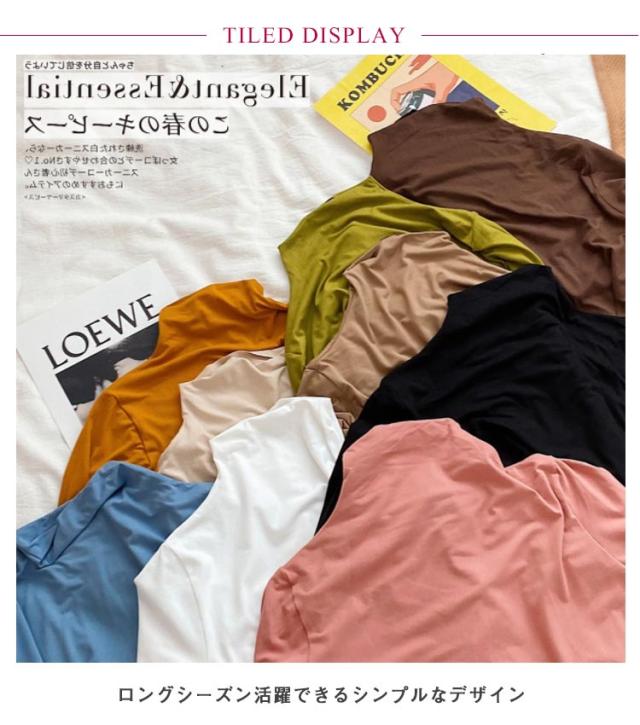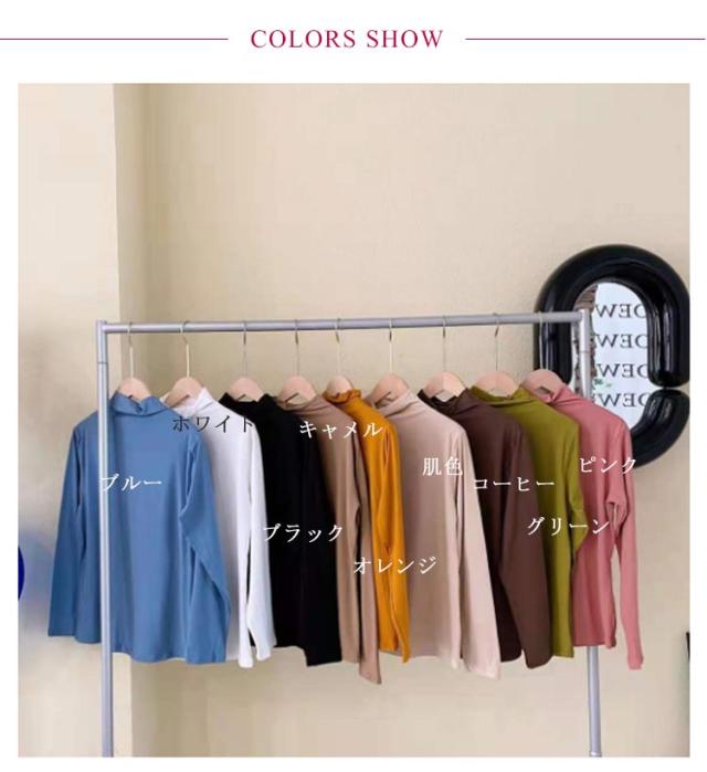 | シンプルな長袖無地ハイネックインナーTシャツ 豊富なカラバリで、色違いで揃えてコーデを楽しめる ロングシーズン活躍できるシンプルなデザイン ストレッチ性に優れた生地を使用し、着心地楽チン | |