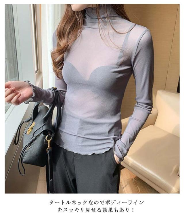 シースルー トップス 黒 シアー カットソー レディース インナー 長袖 ハイネック タートルネック 透け インナー 肌着 レース 重ね着 シースルー シースルーブラウス 薄手 レイヤード コーデ 無地 柔らかい 普段着 デイリー OL 通勤 オフィス