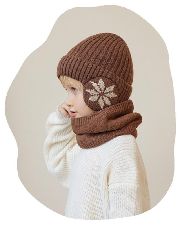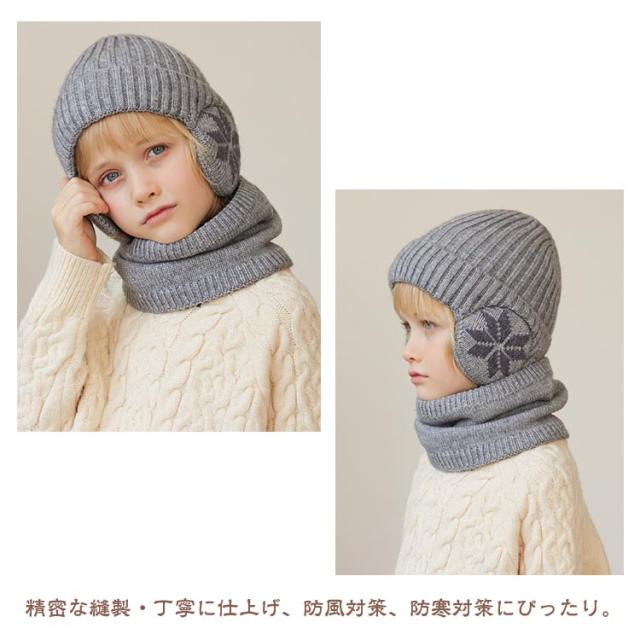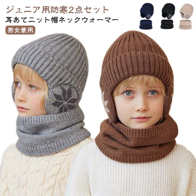 【2点セット】ニット帽 子ども 帽子 ネックウォーマー 子供 男の子 女の子 4-10歳 キッズ 耳あて付き帽子 耳当て ジュニア 裏起毛 冬 秋冬 暖かい 保温 あったか 厚手 防風 可愛い かわいい おしゃれ 寒さ対策 耳あて付き 帽子 小学生 通学 スノーボード 雪遊び 自転車