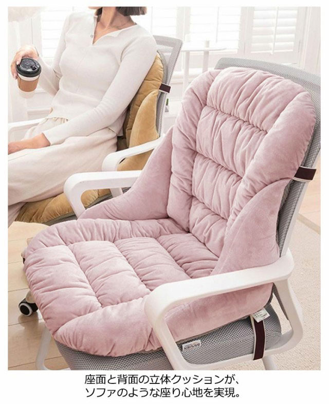 | ふわふわであたっかフランネル生地の背もたれ付き椅子クッション。 ふわふわとした感触は、触れるたびにふんわりとした包み込まれるような感覚を与えてくれます。 腰や背中まわりを温かく包み込むことで、冷えにくく長時間座っている方にもおすすめ!柔らかな中綿をたっぷりと詰め、長い間でも快適な座り心地。 座面と背面の立体クッションが、ソファのような座り心地を実現。 固定バンド付きなのでズレ落ち防止!様々なサイズの椅子に対応可能です! カバーは取り外し洗濯可能。 | |