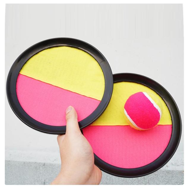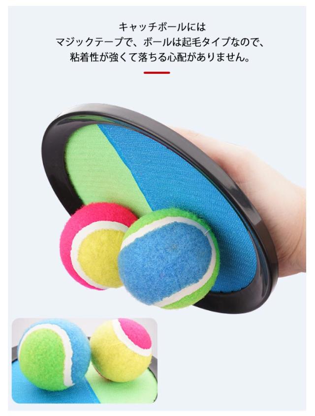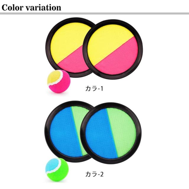| お子様やみんなでワイワイ楽しめるキャッチボールセットです。 投げること、キャッチすることが簡単に出来るセットだから誰でも簡単に遊べるアイテムです。 キャッチボールにはマジックテープで、ボールは起毛タイプなので、粘着性が強くて落ちる心配がありません。 背面にはサイズ調整可能なマジックベルトが付き、手の大きさに合わせてしっかりフィットします。 ちょっとした広場、公園、キャンプ場、ビーチなどで使用できます。 | |