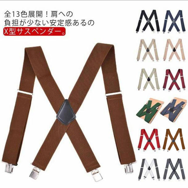 | 全13色展開!肩への負担が少ない安定感あるのX型サスペンダー。 快適さとフィット感のために伸縮性のあるストラップで仕上げられています。 4つの頑丈なクリップが留めるので、しっかりでホールドできます。 幅が広く、長時間使用するとて肩が痛くなくなり、クリップが外れることもありません。 シンプルなデザインで毎日の着用とフォーマルな機会に適しています。 | |