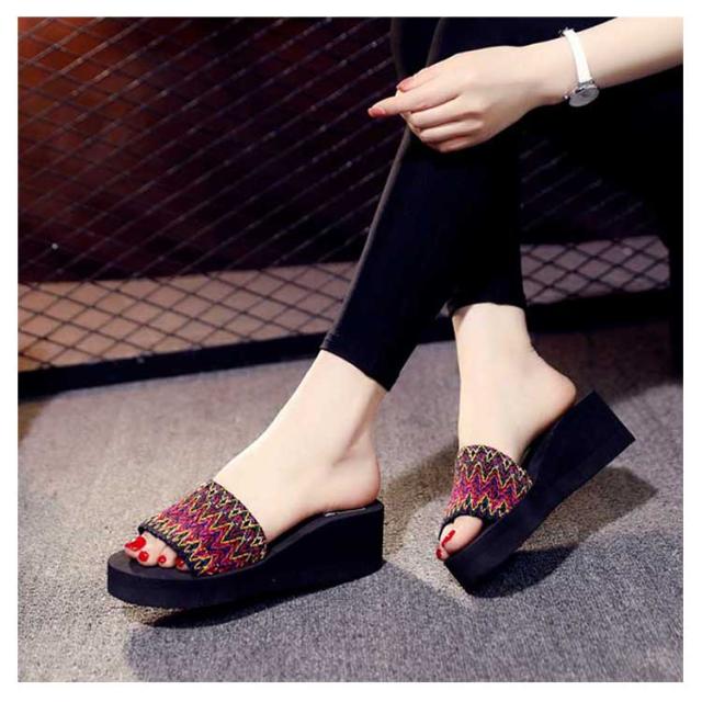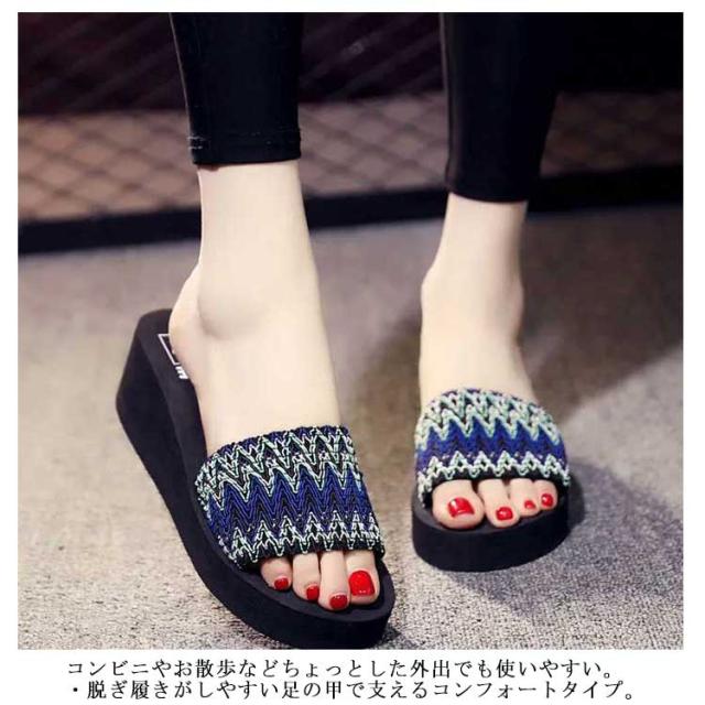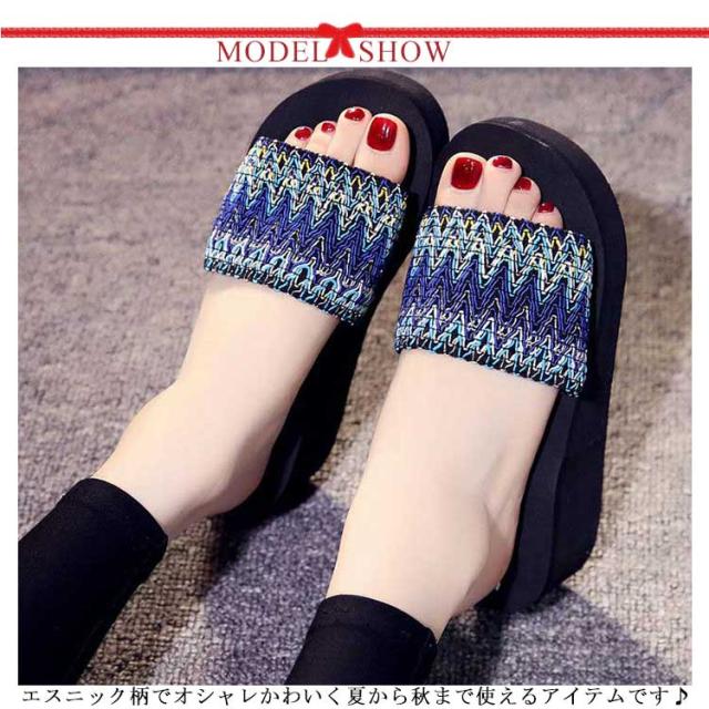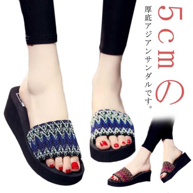 サンダル レディース 厚底 5cm エスニック カラフル アジアン かわいい ぺたんこ フラット 靴 シューズ 厚底アジアンサンダル 厚さ5cm 全2色×6サイズ お洒落 送料無料