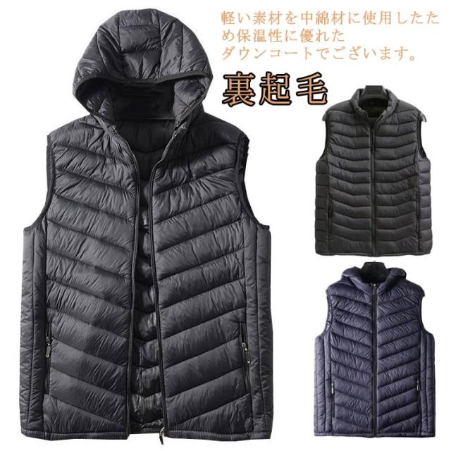 フードなし/フード付き 中綿ベスト メンズ ダウンベスト 防寒ベスト 暖かい 保温 中綿ジャケット コート ベスト トップ ス ショート丈 ダウン風中綿ベスト 無地 厚手 防寒 防風 秋冬 袖なし メンズベスト アウター 秋服 冬服 保温 冬服 キルティング 送料無料