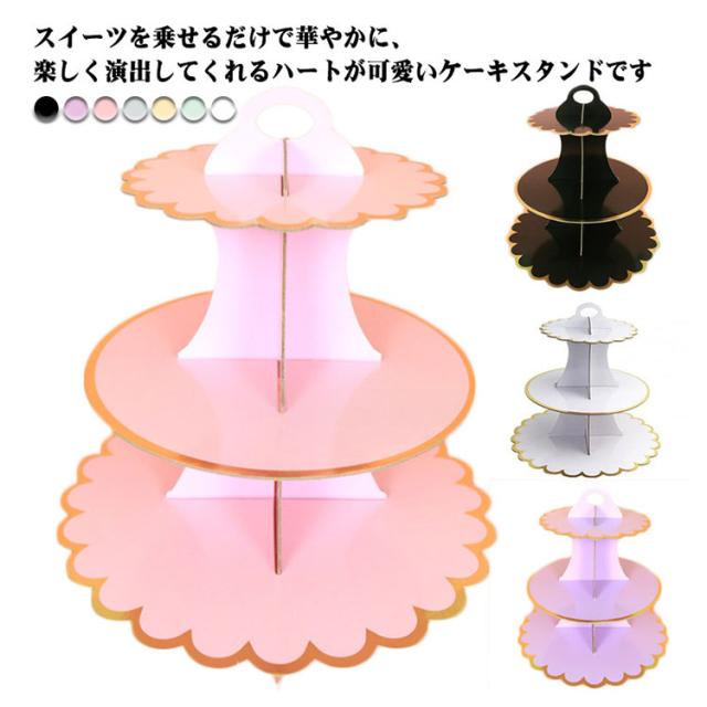 ケーキスタンド 3段 カップケーキ スタンド パルプ製 組立式 ケーキ デザート デザートスタンド カップケーキスタンド アフタヌーンティー スイーツ パーティー おしゃれ カップケーキスタンド パーティーグッズ 3段ケーキスタンド 紙