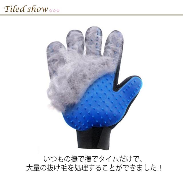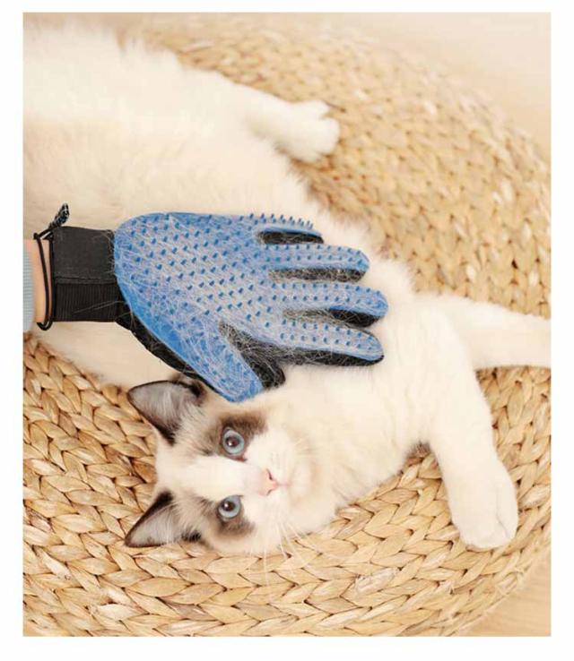 | 愛犬、愛猫に使える簡単に毛玉除去が行えるラバーグローブセット いつもの撫で撫でタイムだけで、大量の抜け毛を処理することができました! 大好きな飼い主さんの手の感触と、小さな凸凹のシリコンヘッドが毛の奥の地肌を優しく刺激し、エステのような心地よいマッサージ効果。 肌に優しいソフトシリコン素材、地肌に当たっても痛くない。 5本指でグルーミング出来るので、繊細な箇所や、深部など、調整して使用する事が出来ます。 グローブの作りがメッシュになっているので手袋の中で蒸れる心配はありません。 | |