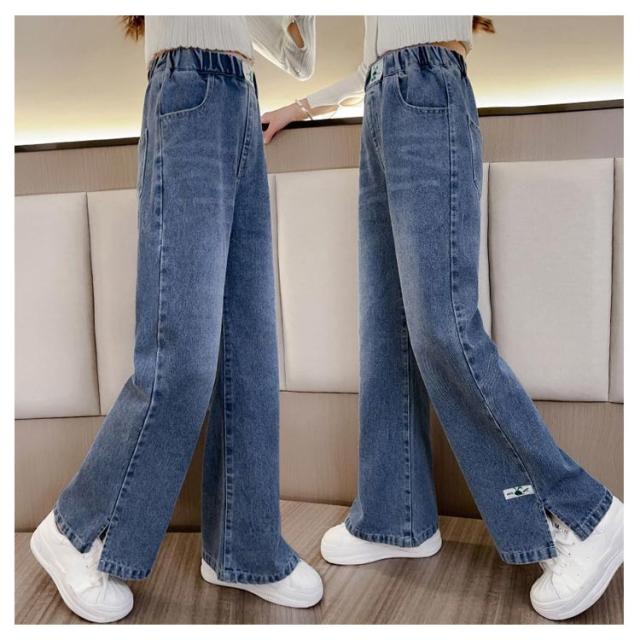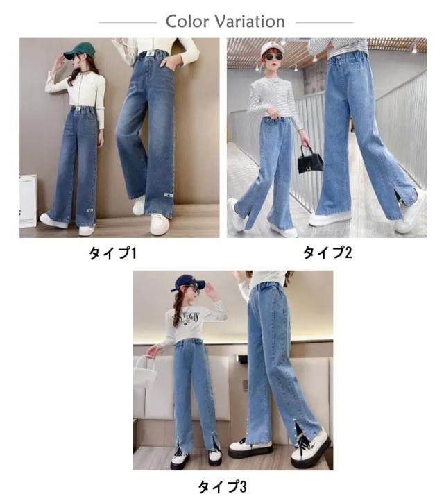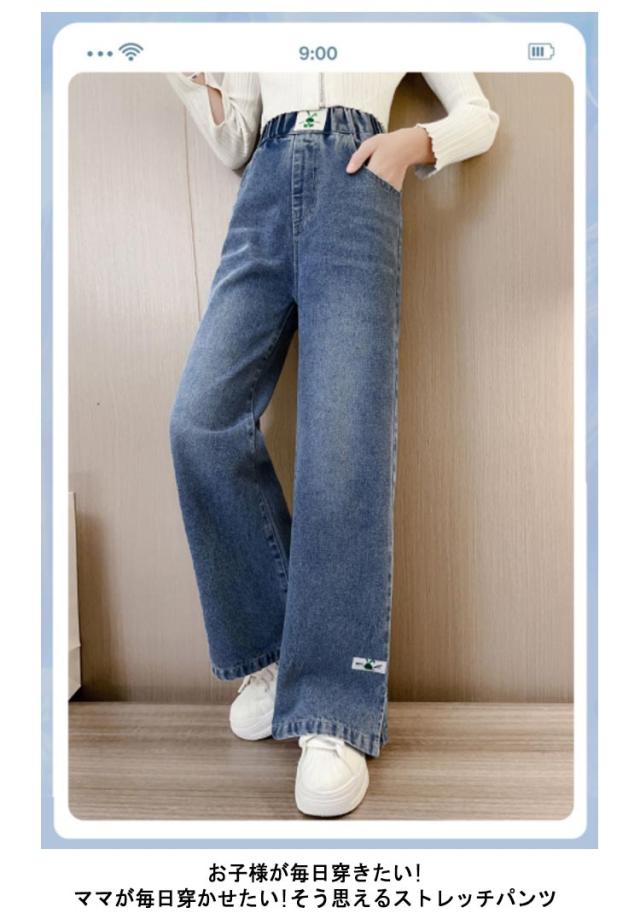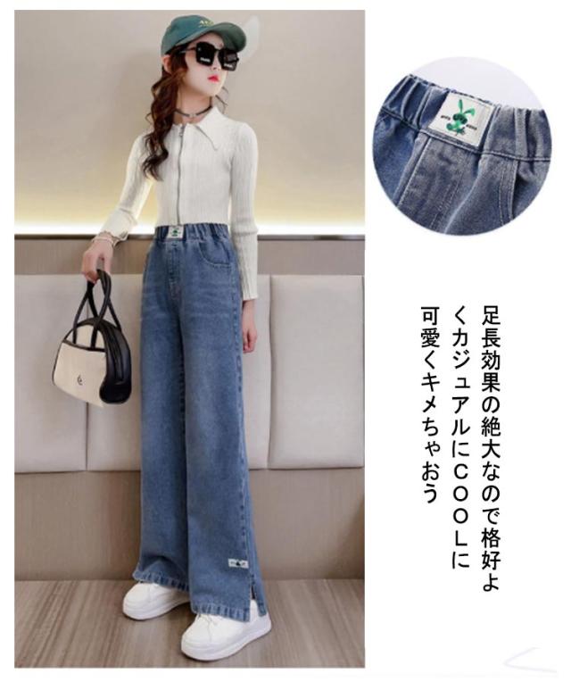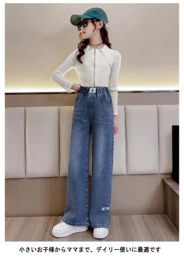 キッズ デニム パンツ ワイドパンツ ジーパン ストレートパンツ デニムパンツ 韓国子供服 子供服 幅広 ウエストゴム ロングパンツ 女の子 小学生 服 春服 120 130 140 150 160 170 韓国こども服 長ズボンこども おしゃれ hiphop ヒップホップ ストリート ガールズ 送料無料