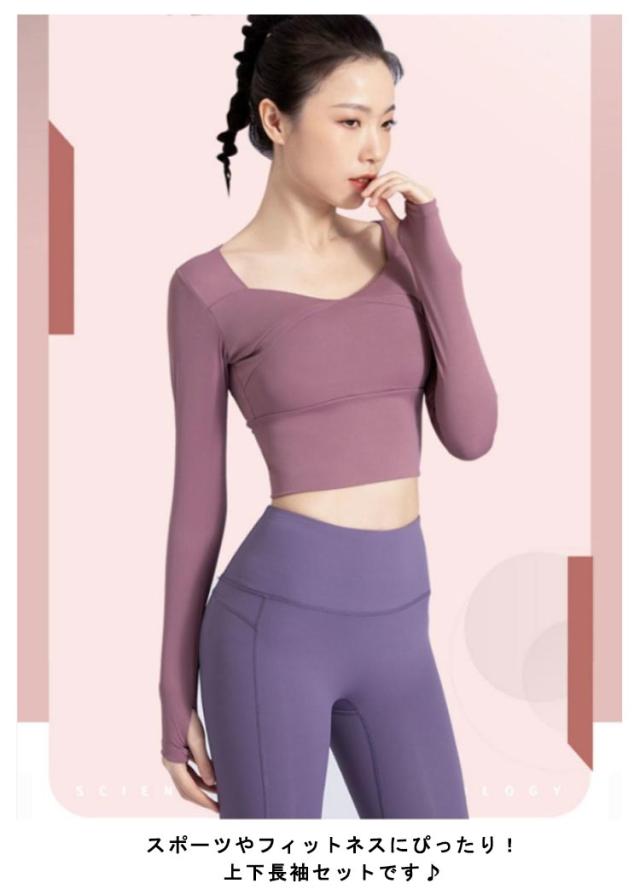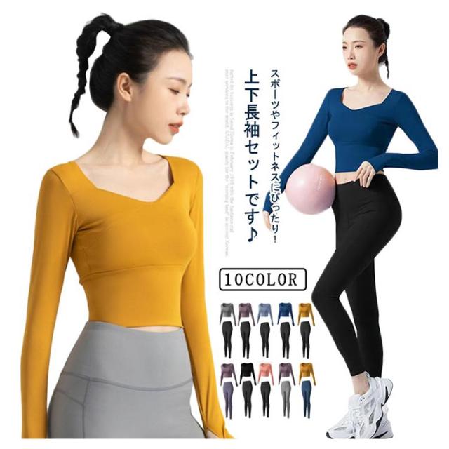 ヨガウェア セットアップ 長袖 かわいい 女性 レディース Tシャツ パンツ ホットヨガ スポーツウェア ロング 体型カバー トレーニング ストレッチ 着圧 伸縮性 ピラティス 吸水速乾 無地 フィットネス 体育祭 トレーニングウェア ジム 運動着 送料無料