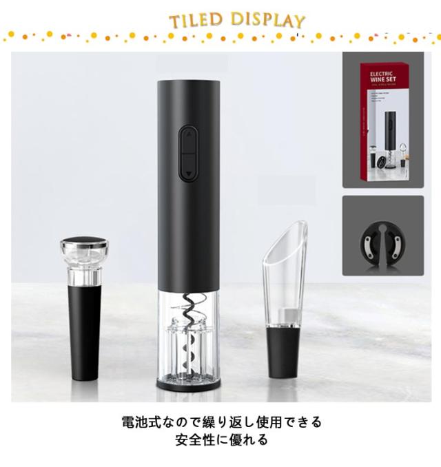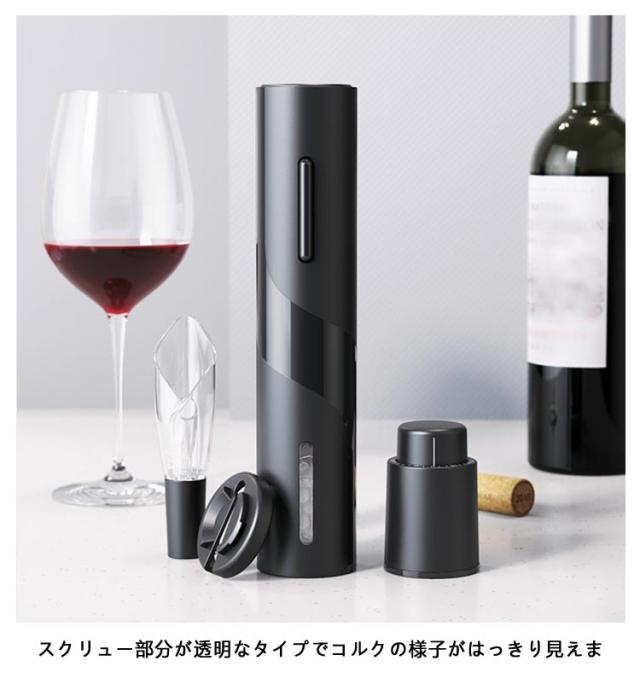 | 電動ワインオープナー 4点セット パワフルで省時省力 電池式なので繰り返し使用できる 安全性に優れる スクリュー部分が透明なタイプでコルクの様子がはっきり見えま | |