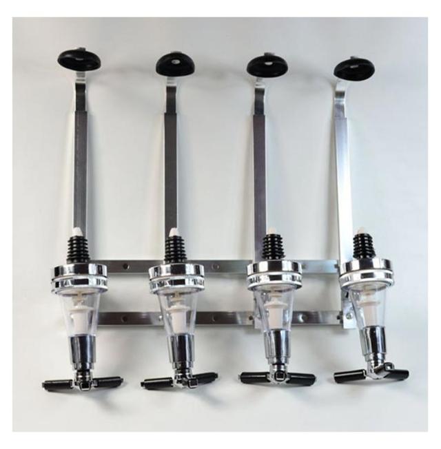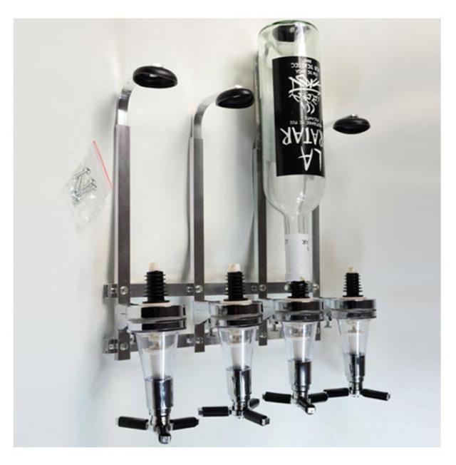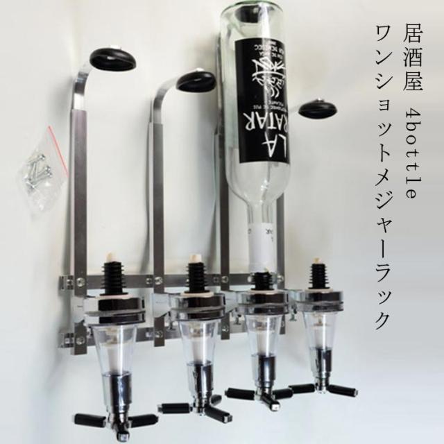 ワンショットメジャー ラック 壁掛け式 4連ボトルタイプ ボトルディスペンサー 計量 BAR 居酒屋 お店 ウイスキー お酒 キッチン用品 食器 調理器具 ワイン バー 酒用品 ボトルホルダー