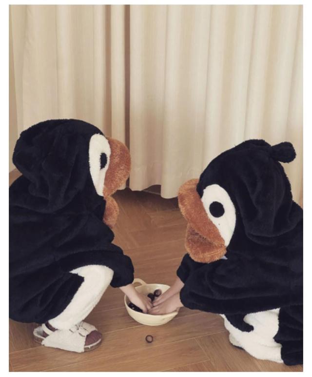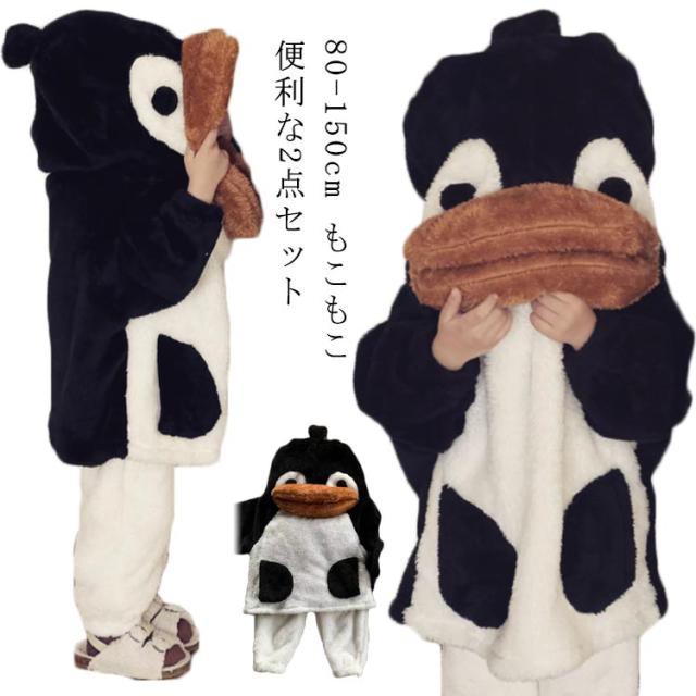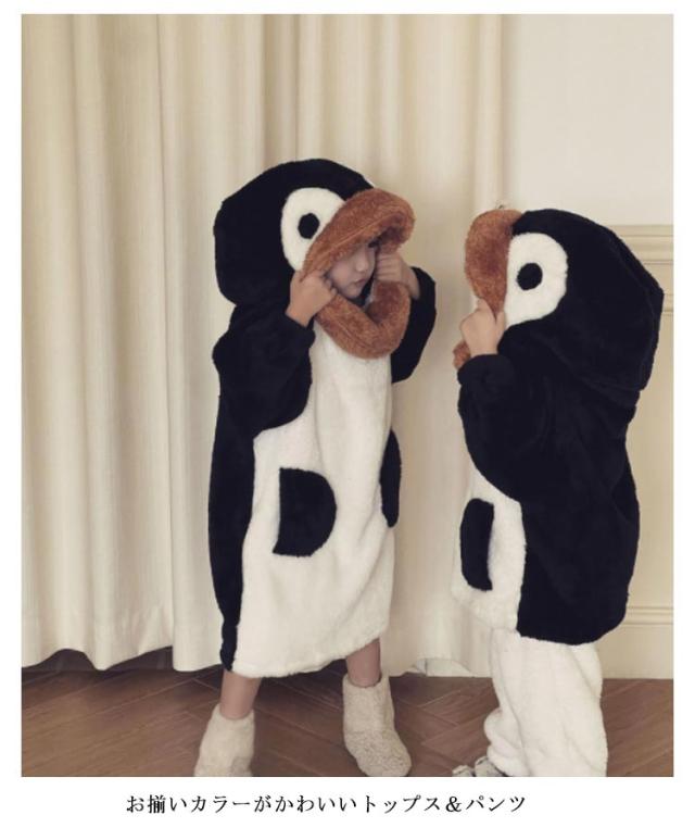 2点セット パジャマ キッズ 女の子 男の子 冬 長袖 冬用 パジャマ キッズ パジャマ ルームウェア もこもこ ペンギン 可愛い 冬 ルームウェア もこもこパジャマ パジャマセット 上下セット 裏起毛 かわいい おすすめ Uネック 韓国子供服 100 110 120 130 140 150