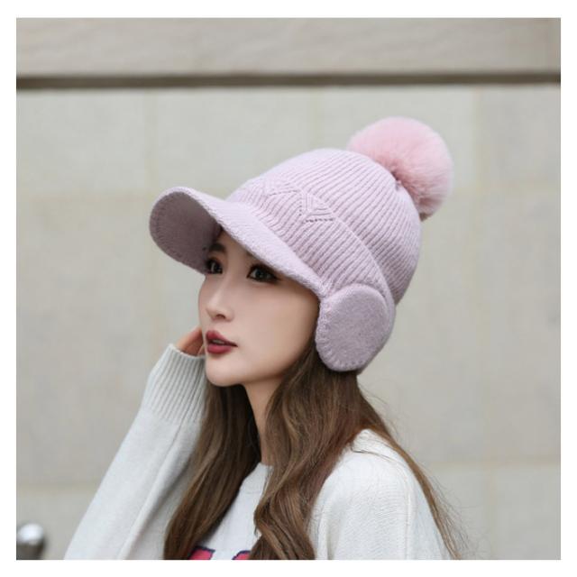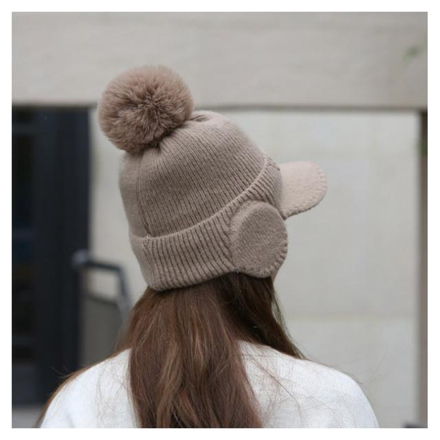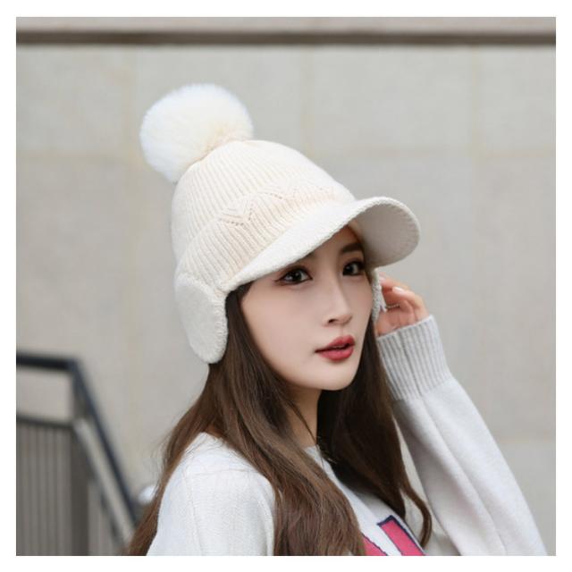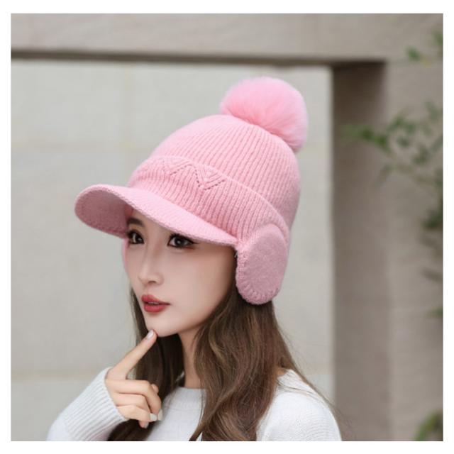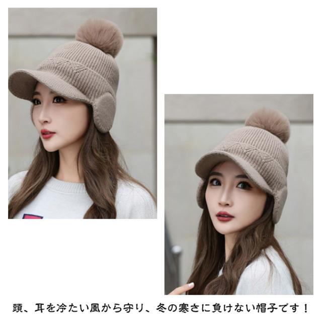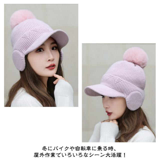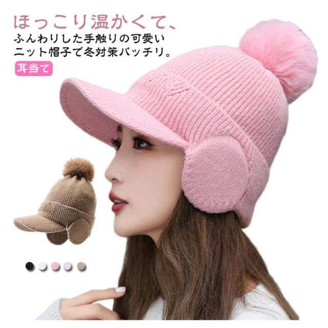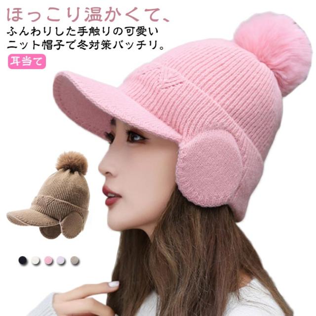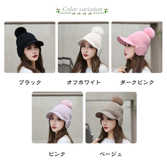 帽子 レディース 冬 防寒 防風 ニット帽 ぼうし 耳当て ニット帽 フリーサイズ ポンポン ニットキャップ 女性用 暖かい 外出 通学 可愛い ふわふわ 厚手 通勤 運動 雪遊び ハイキング ベージュ ブラック オフホワイト ピンク ダークピンク 送料無料