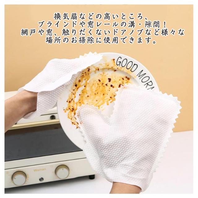 | 不織布手袋 お掃除グローブ100枚入り。 換気扇などの高いところ、ブラインドや窓レールの溝・隙間!網戸や窓、触りだくないドアノブなど様々な場所のお掃除に使用できます。 エアコンや扇風機、コードや車内、パソコンやサッシなど、ほこりが溜まりやすいけど雑巾が使いにくい細かい場所と掃除機が入りにくいすき間に◎ 使い易い、お掃除グローブ。フリーサイズ・左右兼用なので気にせず気軽にお使いいただけます。 | |