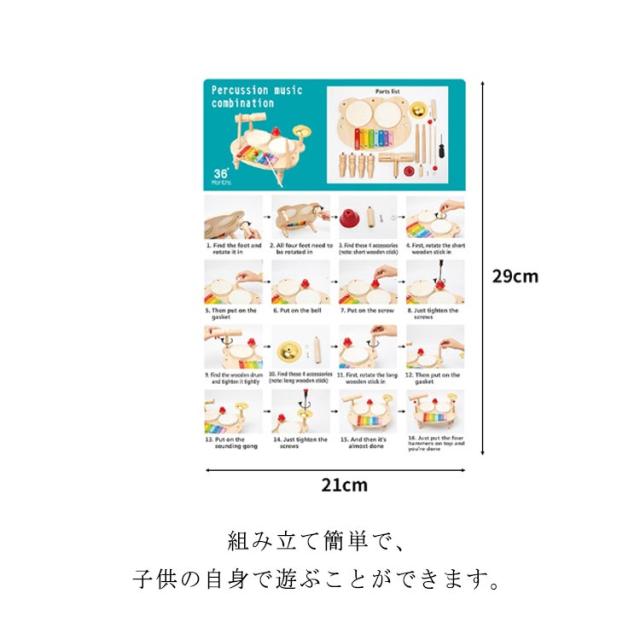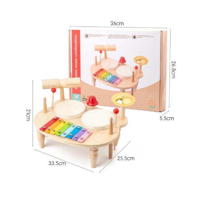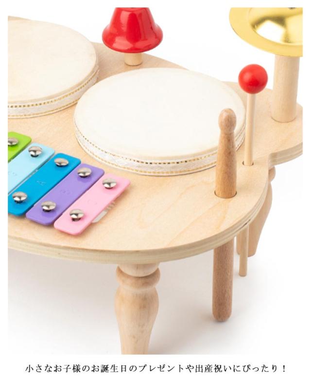 | ドラム・シンバル・木琴・トーンブロック・ベルの子どもが大好きな5つの音が楽しめる。 様々な指先の動きを通して、遊びながら指先トレーニング。 高品質な木材を使用し、天然木のぬくもりをたっぷりと感じる。 組み立て簡単で、子供の自身で遊ぶことができます。 全ての角を丸く加工して、滑らかで傷つかない、小さなお子様が使っても安心です。 赤ちゃんのお手てでも持ちやすい、安定感のあるサイズ。 小さなお子様のお誕生日のプレゼントや出産祝いにぴったり! | |