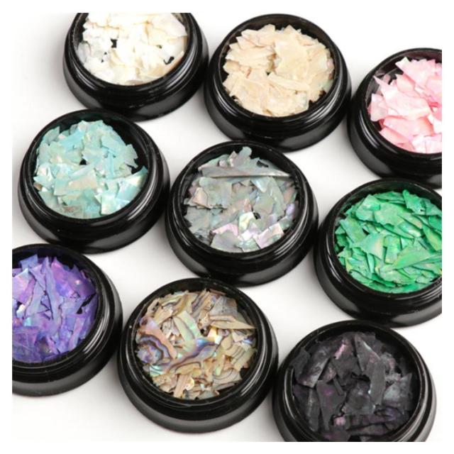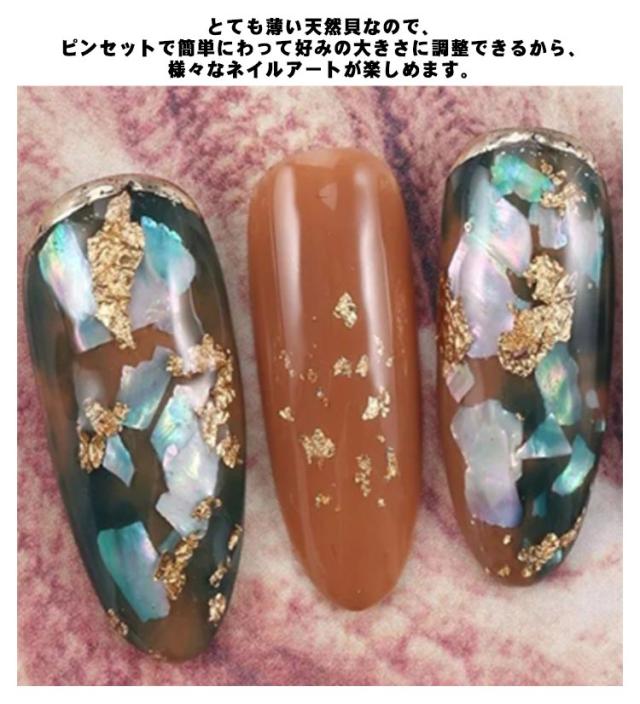 | 高品質カラー天然貝ネイルパーツ。 天然貝の独特の上品な輝きが自然なニュアンスアートに溶け込みます。 とても薄い天然貝なので、ピンセットで簡単にわって好みの大きさに調整できるから、様々なネイルアートが楽しめます。 極薄なので、ジェルの埋め込みもきれいに仕上がり、光沢ある貝殻の輝きが煌めく独自のアートが楽しめます。 | |