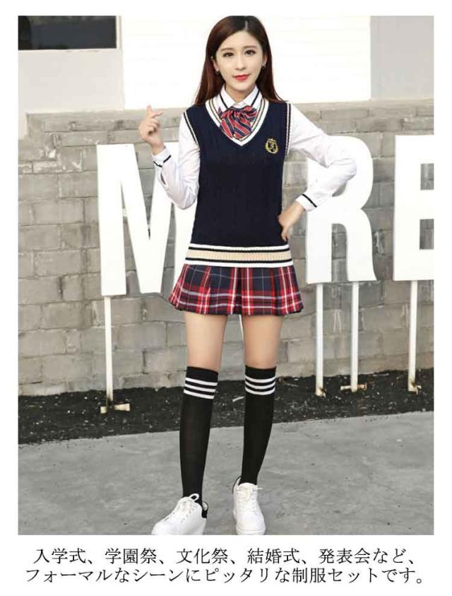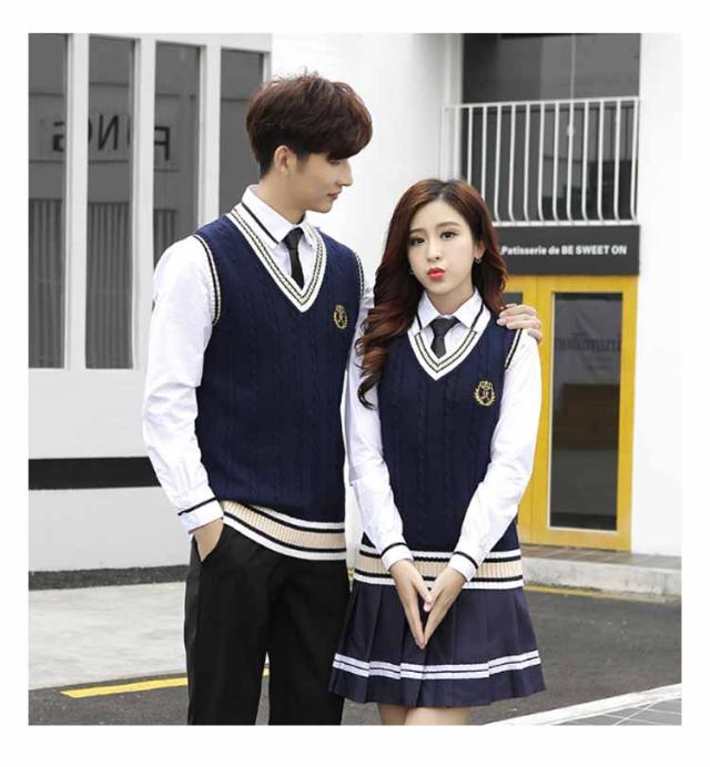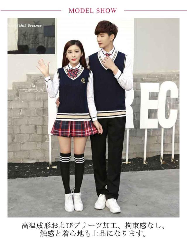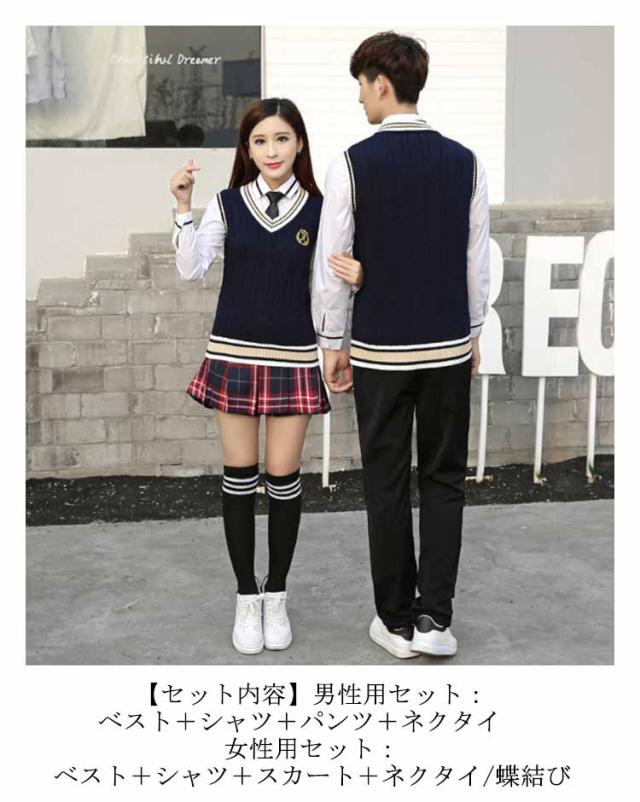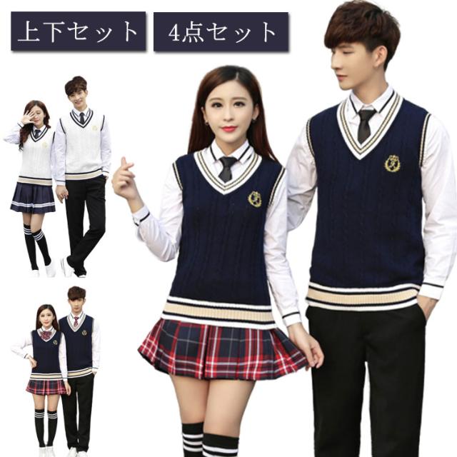 韓国 女の子 男の子 学生 JK制服 上下セット 4点セット 白シャツ 制服 ニットベスト プリーツスカート パンツ 制服 長袖 ライン入り ニットベスト ネクタイ 男子高生 女子高校生 高校生 中学生 学生服 スクール コスプレ衣装 コスチューム 仮装 おしゃれ