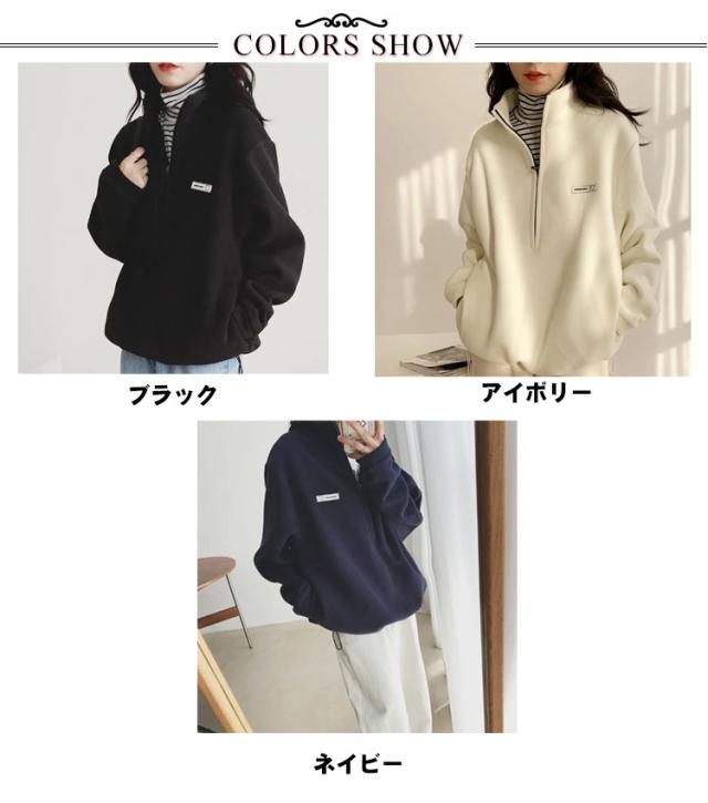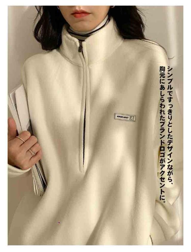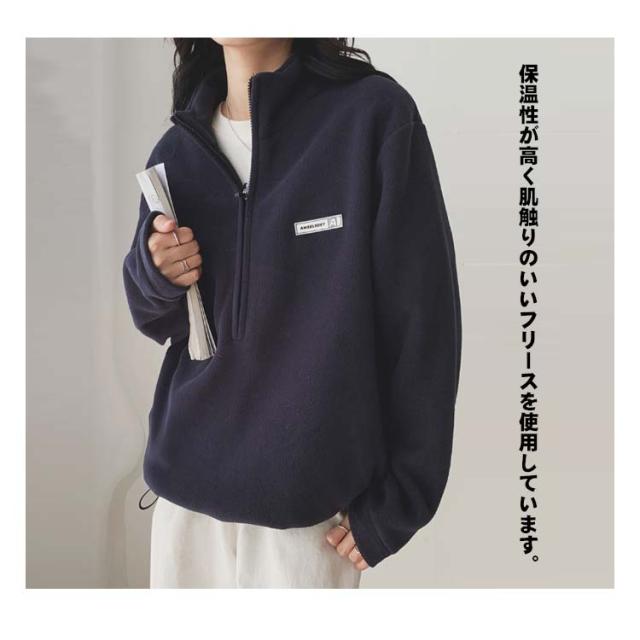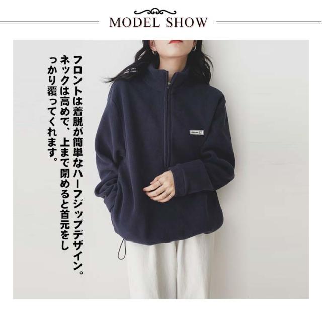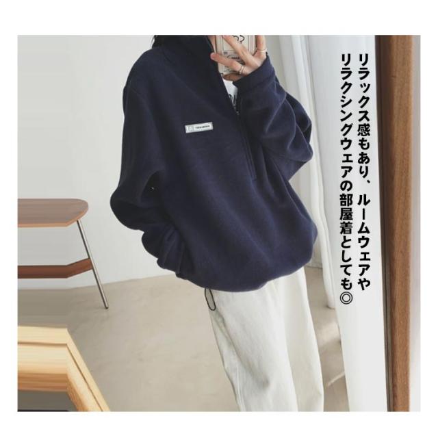 ハーフジップ ボア プルオーバー スウェット レディース トレーナー トップス プルオーバー フリース 起毛 ハーフジップ 長袖 カジュアル オーバーサイズ 体型カバー 無地 ハイネック サイドポケット 暖か 防寒 楽ちん 春 秋 冬