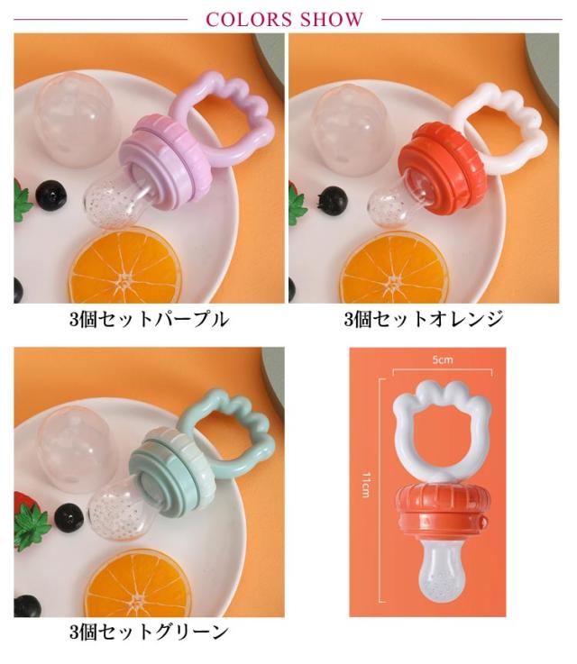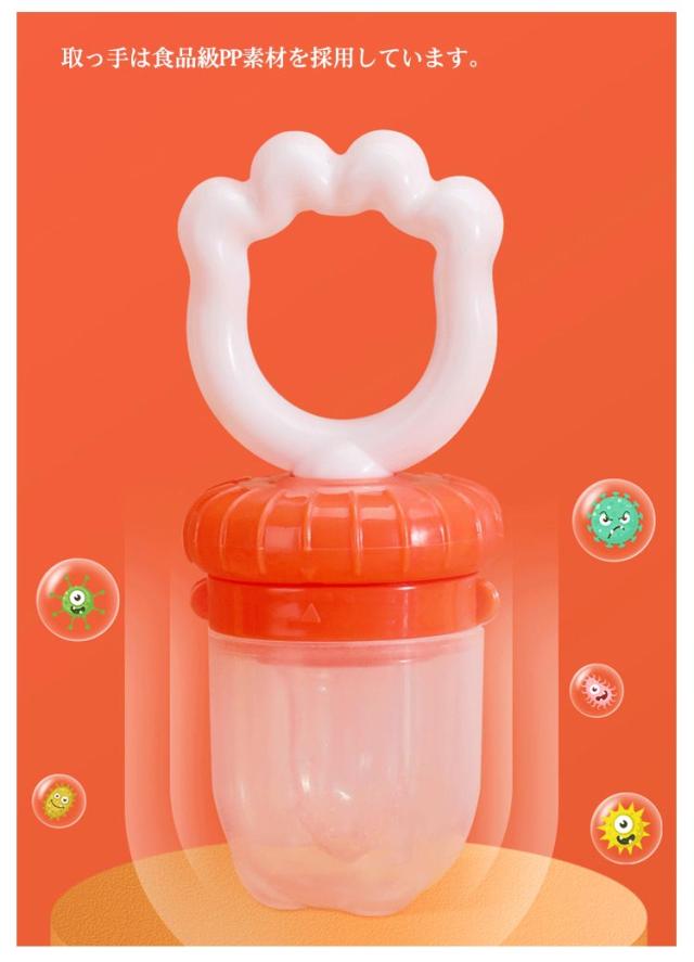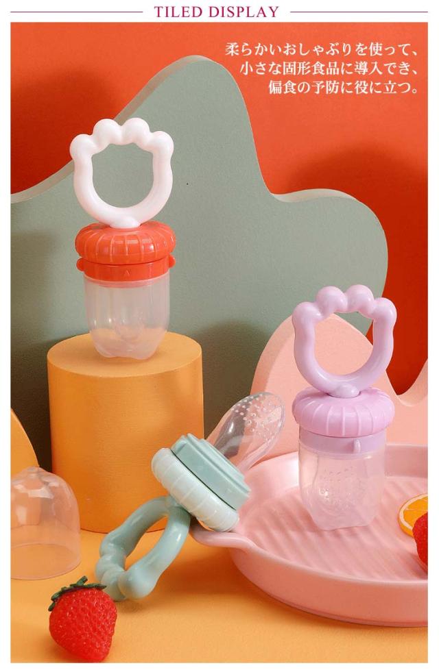 | 赤ちゃんを健康に成長させ、母乳以外、様々な果物、野菜から栄養を取ることができます。 柔らかいおしゃぶりを使って、小さな固形食品に導入でき、偏食の予防に役に立つ。 スプーンで食べずに困っているママ、パパ向けの摂食ツール。 取っ手は食品級PP素材を採用しています。 網袋は食品級シリカゲル素材を採用しています。環境保護に異臭がありません。 食品級の丈夫なシリコン素材を採用しており、安全性が高く、老化しにくいです。 赤ちゃんの手で外さないスナップショットロックは、内容が漏れないデザインなので、 安心です。柔らかいシリコンのおしゃぶりは最初の歯のかゆみに最適です。 | |