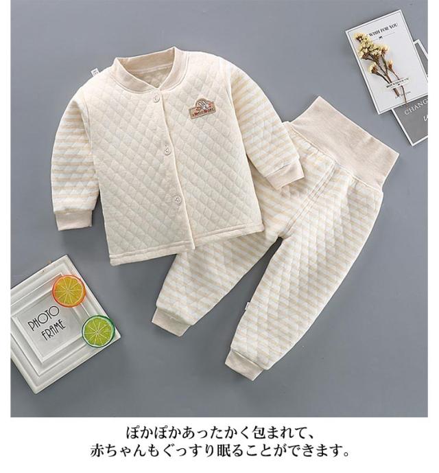 | 肌触りの良いしっかりいした綿生地です。 柔らかく優しい肌触りの生地だから、着心地! トップスは前全開スナップボタン留めで脱ぎ着させやすい。 厚みがあるので、お子様をあったかく包まれて、ぐっすり眠ることができます。 ぽかぽかあったかく包まれて、赤ちゃんもぐっすり眠ることができます。 ウエストはのびのびゴムだから着脱しやすく動きやすい! シンプルデザインで余計な飾りがないので、パジャマにもインナーにもピッタリ♪ 程よい厚みで一年中着用いただけます。 | |