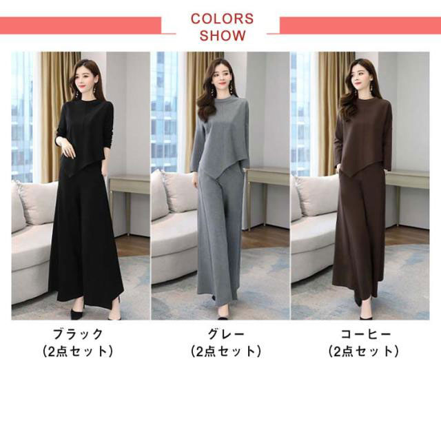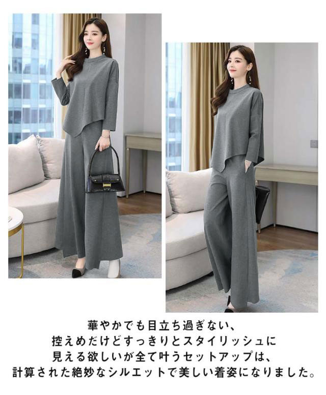 送料無料 パンツスーツ セットアップ ワイドパンツ パンツセットアップ レディース カジュアル おしゃれ 春 秋 パンツ ガウチョパンツ ゆったり 体型カバー 長袖 オフィス カジュアル きれいめ 入学式 ママスーツ 卒園式 通勤 卒業式 着痩せ 母親 春 秋 冬 大きいサイズ