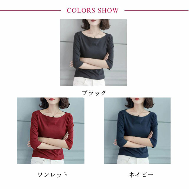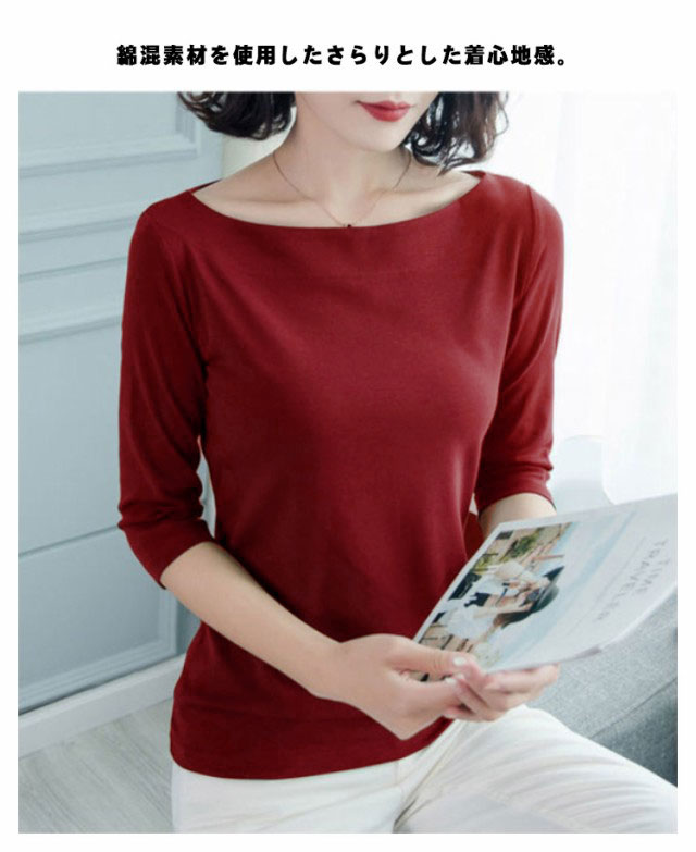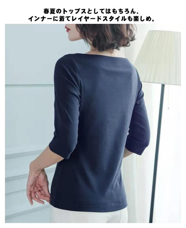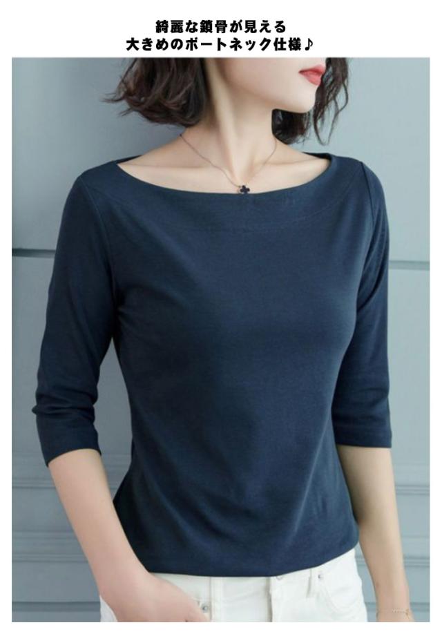 送料無料 Tシャツ レディース 七分袖 五分袖 トップス 七分袖tシャツ カットソー ボートネック tシャツ インナー 重ね着 カットソー 無地 シンプル カジュアル