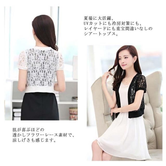 レディース ボレロ カーディガン 総レース ショートカーディガン 透かし編み レースカーディガン 半袖 七分袖 長袖 サマーカーディガン 花柄レース 透け感 羽織り おしゃれ フェミニン 春 夏 M L XL 2XL 3XL 4XL 5XL