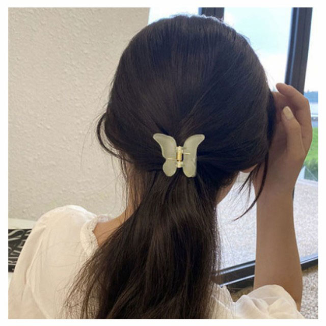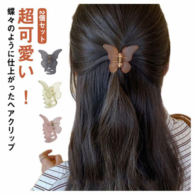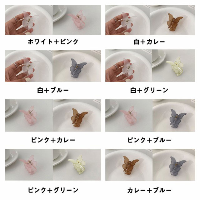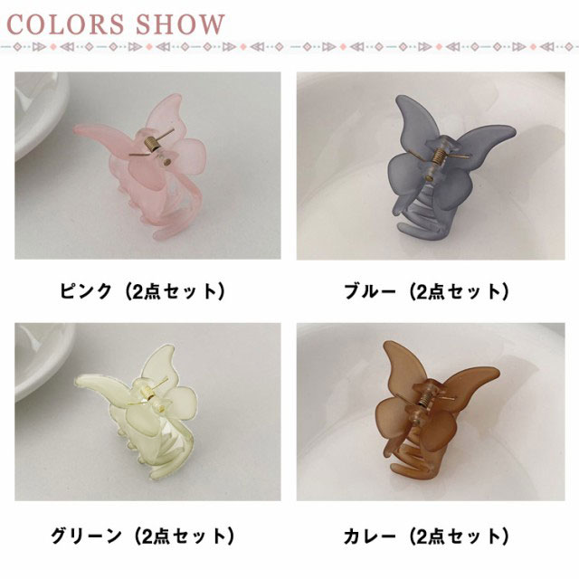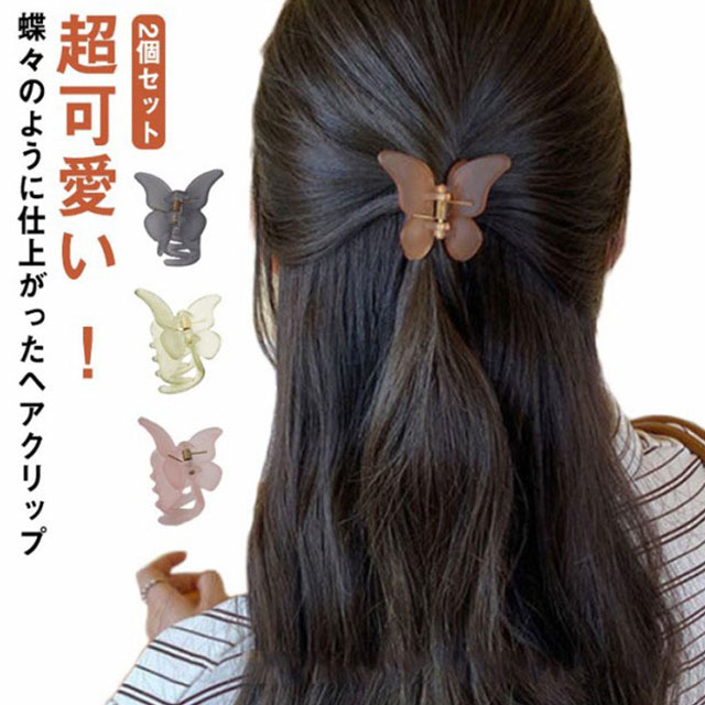 送料無料 2個セット ヘアクリップ ミニ 超軽量 マット クリア まとめ髪 前髪 蝶々 バンスクリップ 小さめ ヘアアレンジ ヘアアクセサリー しっかり かわいい ホワイト パープル グリーン 通勤 オフィス きれい 大人可愛い 髪飾り サイド