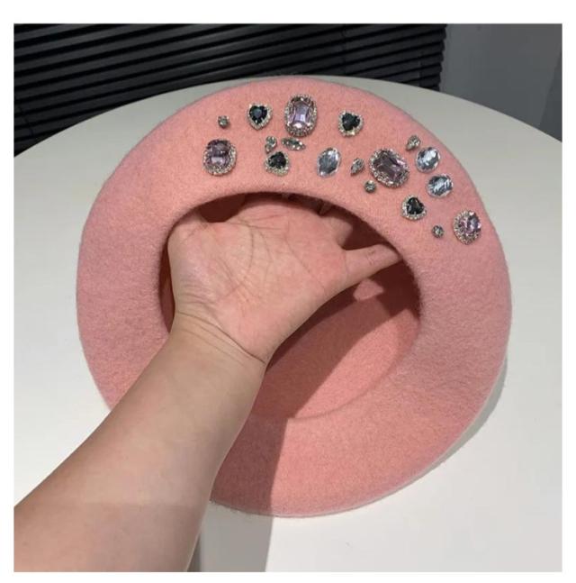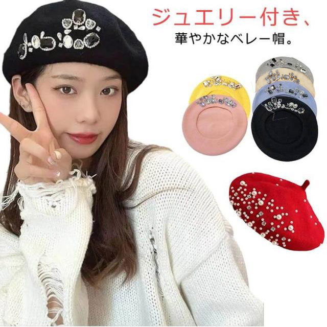 ジュエリー ベレー帽 レディース かわいい ウールライク キャップ パール おしゃれ レディース帽子 ベレー 帽子 韓国ファション 華やか インスタ映え 春 秋 冬 56-58cm