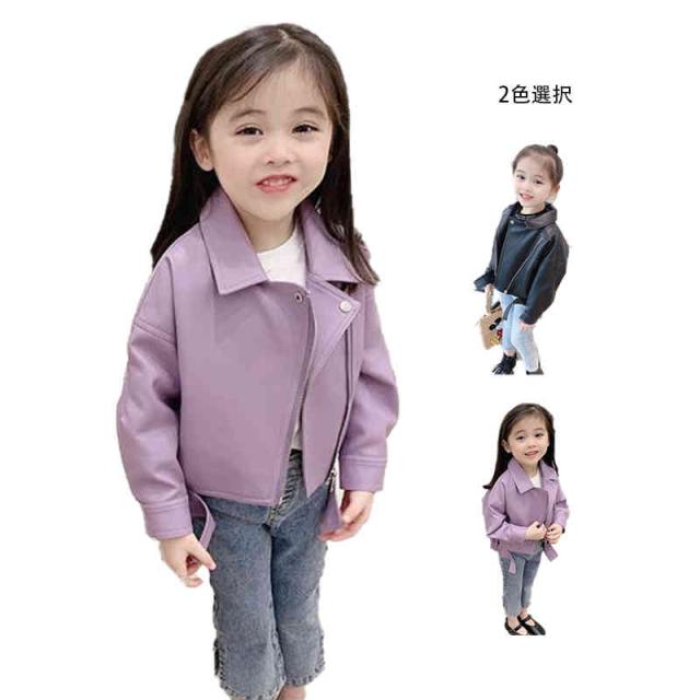 PU レザージャケット キッズ ショートジャケット 折襟 ジャケット 女の子 子供服 おしゃれジャケット PU レザー アウター 子供ジャケット キッズ服 ジュニア ダンス 送料無料 無地 シンプル カジュアル 普段着