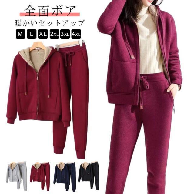 上下セットアップ スウェット 上下セット 裏ボア付き 長袖 裏起毛 パーカー パーカー パンツ スポーツ 部屋着 パジャマ スウェットパンツ ルームウェア カジュアル ジップアップ 部屋着 スポーツ ルームウェア 大きいサイズ 送料無料