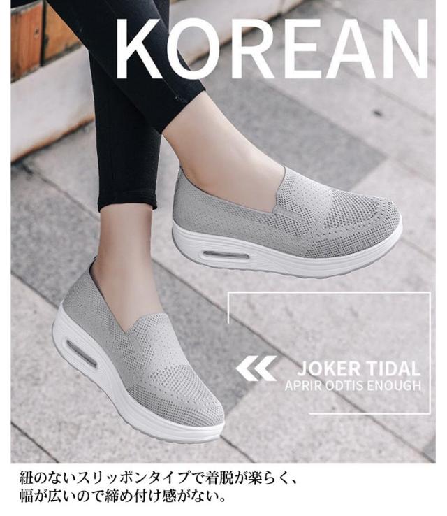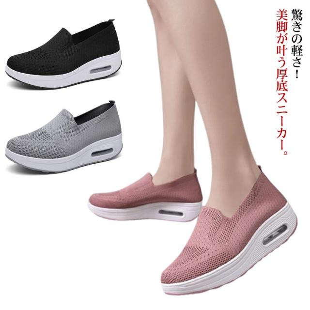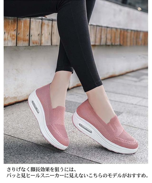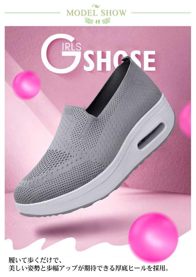 | 驚きの軽さ!美脚が叶う厚底スニーカー 履いて歩くだけで、美しい姿勢と歩幅アップが期待できる厚底ヒールを採用。 通気性のいいアッパーでムレにくい、クッション性も良く足に負担がかからない。 紐のないスリッポンタイプで着脱が楽らく、幅が広いので締め付け感がない。 さりげなく脚長効果を狙うには、パッと見ヒールスニーカーに見えないこちらのモデルがおすすめ。 ダイエットやウォーキング、仕事使いにヘビロテ間違いなし。ふわっと軽いから出かけるのも楽しくなる! ジムやランニング、ウォーキングにもおすすめ!普段のコーデで服に合わせてカラーを選べます。 | |